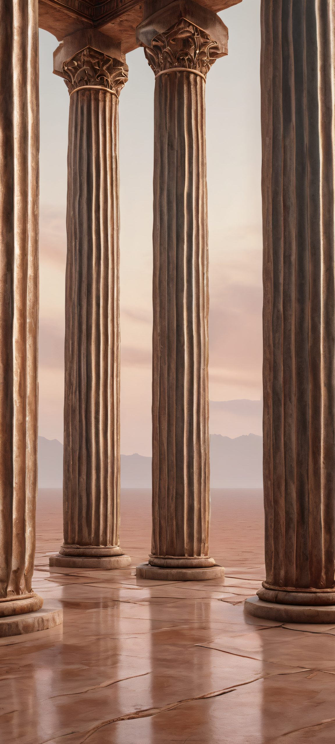Elevate your mobile home screen with this stunning vertical wallpaper, perfectly optimized for iPhone, Samsung Galaxy, and Android devices. This breathtaking masterpiece showcases a dramatic scene of abandoned pillars, masterfully rendered in 2K QHD resolution. The high level of detail and moody atmosphere make it a perfect fit for any device.