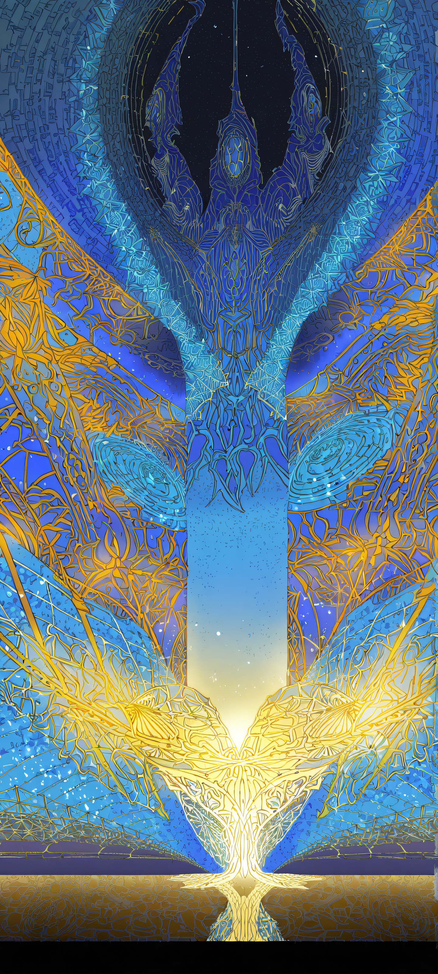 This breathtaking digital artwork is specifically designed to provide an epic desktop wallpaper experience on your iPhone, Samsung Galaxy, or Android device. The stunning vertical portrait composition features Astronaut Aki in a blue outfit, walking away from the viewer against a clean and empty void at the top. Below, a futuristic cityscape unfolds, showcasing a blend of 8k resolution and 16:9 aspect ratio. The ethereal lighting radiates brilliance with ray-traced reflections, creating a warm glow on Aki’s clothing and surrounding environment.