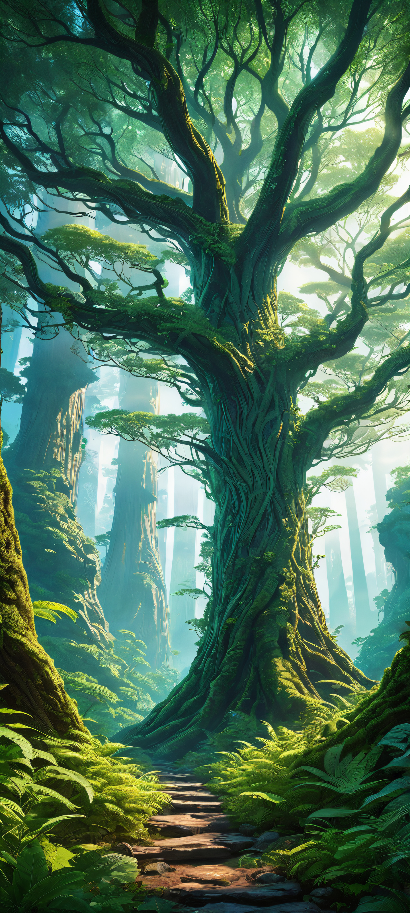 A breathtaking vertical portrait artwork of A mesmerizing alien forest, with plants and trees comprised of intricate nerve fibers and brain tissue, placed in the lower-middle, intricate micro-details, Perfectly clean and empty top half with vast pure void, allowing for a breathtaking vista of nerve-grass hills and dendrite vines stretching out towards the horizon, Award-winning digital art, stunning visual impact, and pristine clarity, echoing the surreal nature of this biotech fantasy landscape, Ethereal lighting bathes the scene in radiant, brilliant colors, with ray-traced reflections casting an otherworldly glow on the biotech flora, Vibrant greens and blues dominate this fantastical landscape, reminiscent of a futuristic cityscape, punctuated by bursts of neon-like dendrite patterns, ethereal lighting, radiant, brilliant colors, ray traced reflections, pristine clarity, portrait composition, centered subject in the lower middle, perfectly clean and smooth top half for UI, extreme depth of field blurred background, highly textured surfaces, intricate micro-details, physically based rendering, award-winning digital art, epic breathtaking scale, stunning visual impact, perfect composition, macOS wallpaper aesthetic, masterpiece, 2K QHD resolution, 9:20 aspect ratio.