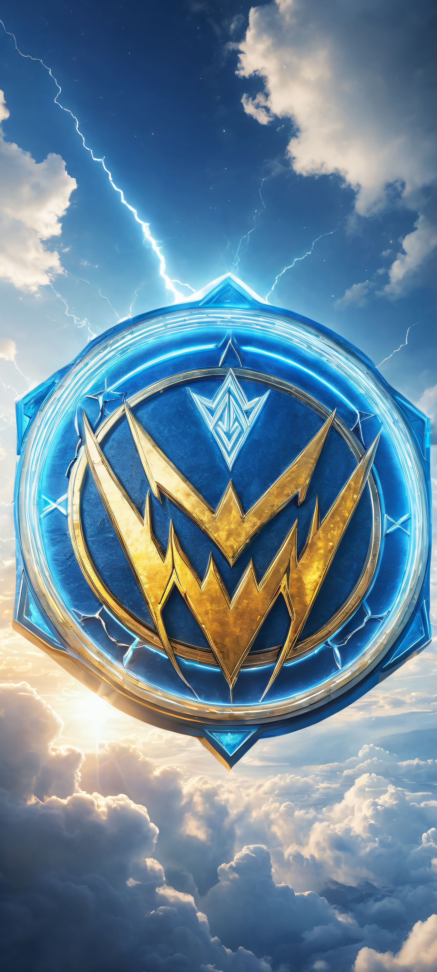A breathtaking vertical portrait artwork of All Elite Wrestling logo placed in the lower-middle with insane micro-details, Perfectly clean and empty top half with vast pure void, serving as a canvas for the majestic wrestling logo, Award-winning digital art, stunning visual impact, and pristine clarity, Ethereal lightning illuminates the scene from above, casting an otherworldly glow on the clouds and the logo, creating an air of anticipation and excitement, [‘Electric blue’, ‘Golden yellow’, ‘Pure white’], ethereal lighting, radiant, brilliant colors, ray traced reflections, pristine clarity, portrait composition, centered subject in the lower middle, perfectly clean and smooth top half for UI, extreme depth of field blurred background, highly textured surfaces, intricate micro-details, physically based rendering, award-winning digital art, epic breathtaking scale, stunning visual impact, perfect composition, macOS wallpaper aesthetic, masterpiece, 2K QHD resolution, 9:20 aspect ratio.
