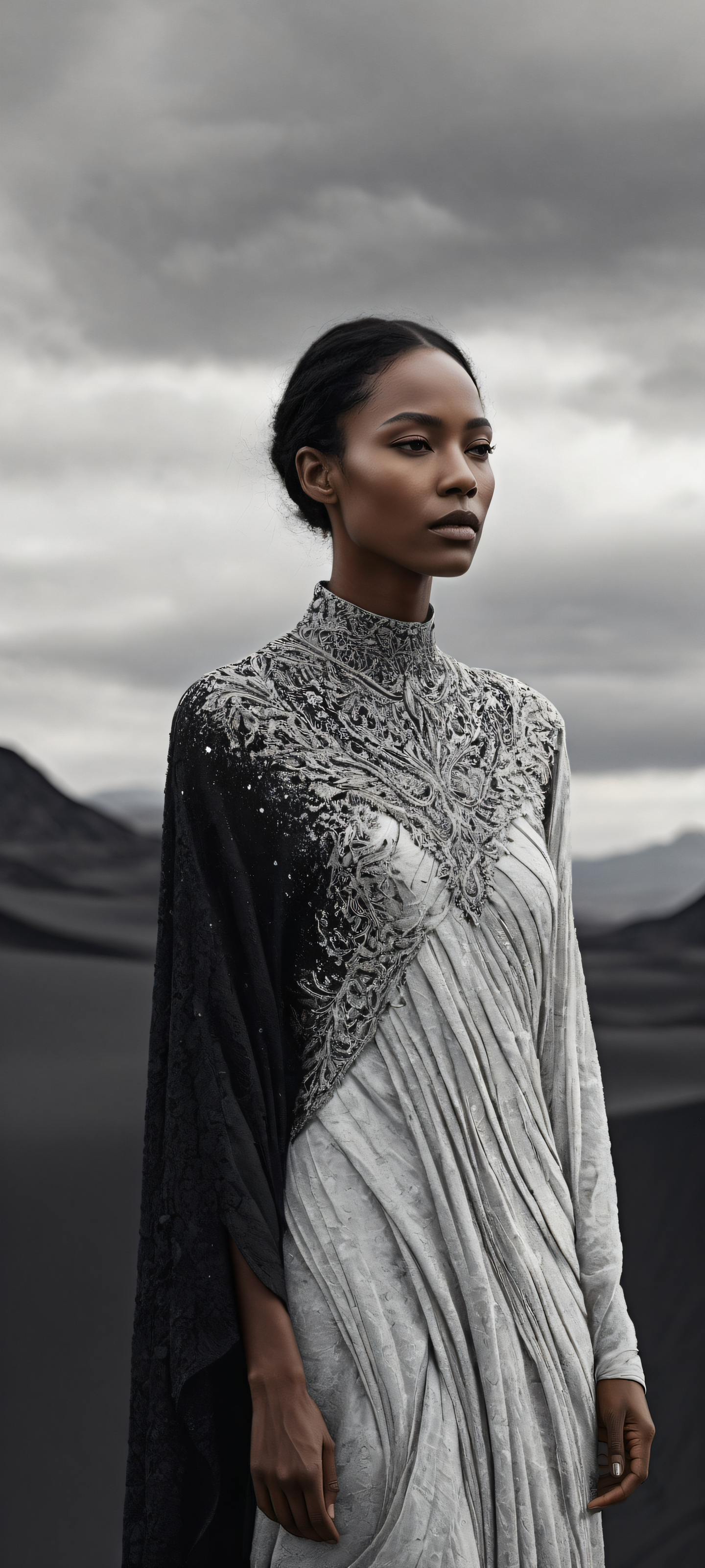 A breathtaking vertical portrait artwork of original character placed in the lower-middle, intricate micro-details of ash-like layered fabric edges crumbling into particles, perfectly clean and empty top half with vast pure void, standing figure in open barren land, award-winning digital art, stunning visual impact, pristine clarity, sleek dark mode aesthetic with deep perfect blacks, striking crisp contrast, and elegant luminescent accents, [‘desaturated tones’, ‘ash-like grey’], elegant low-key lighting, deep perfect blacks, striking contrast, sleek dark mode aesthetic, luminescent accents, deep rich colors, portrait composition, centered subject in the lower middle, perfectly clean and smooth top half for UI, extreme depth of field blurred background, highly textured surfaces, intricate micro-details, physically based rendering, award-winning digital art, epic breathtaking scale, stunning visual impact, perfect composition, macOS wallpaper aesthetic, masterpiece, 2K QHD resolution, 9:20 aspect ratio.
