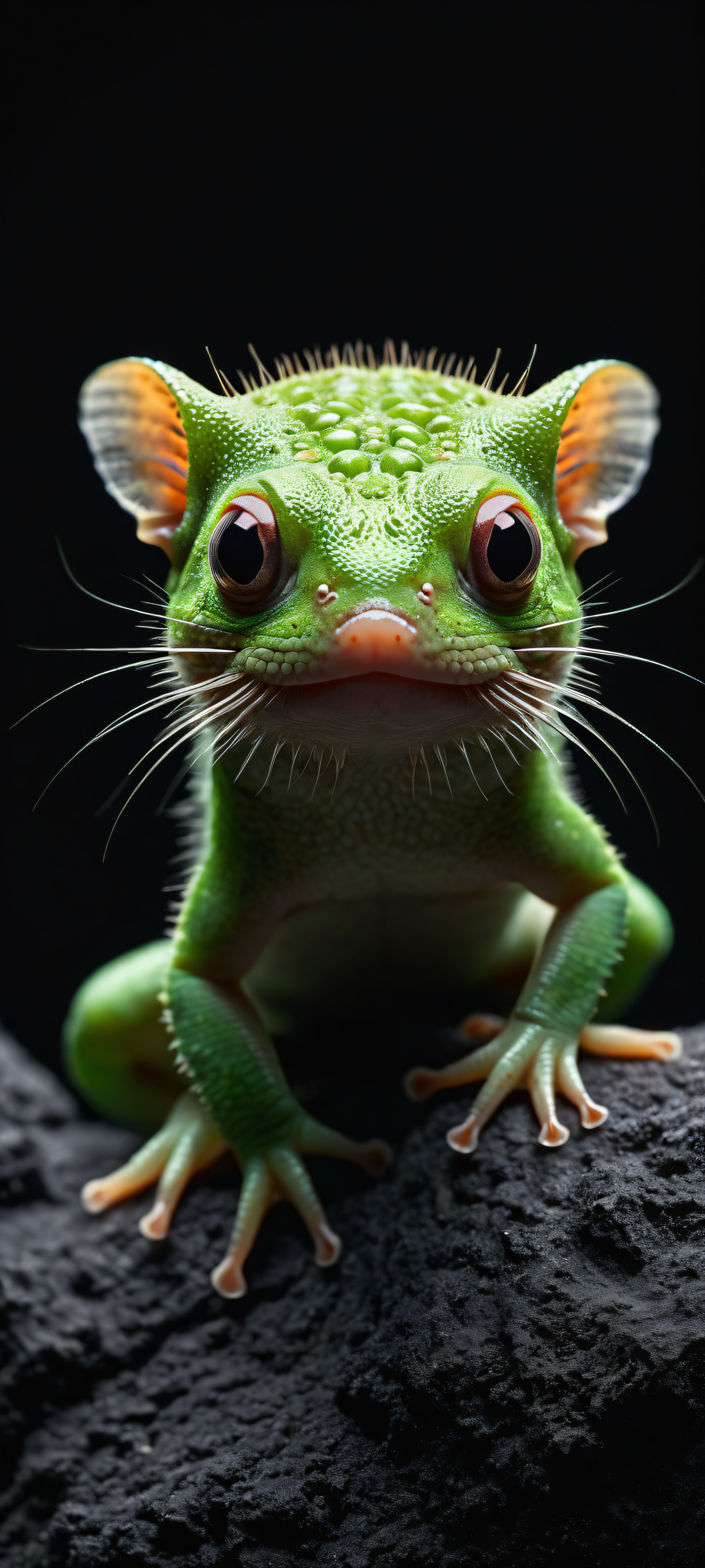 iPhone/Android wallpaper featuring an axolotl-inspired artwork with intricate details and a sleek dark mode aesthetic.