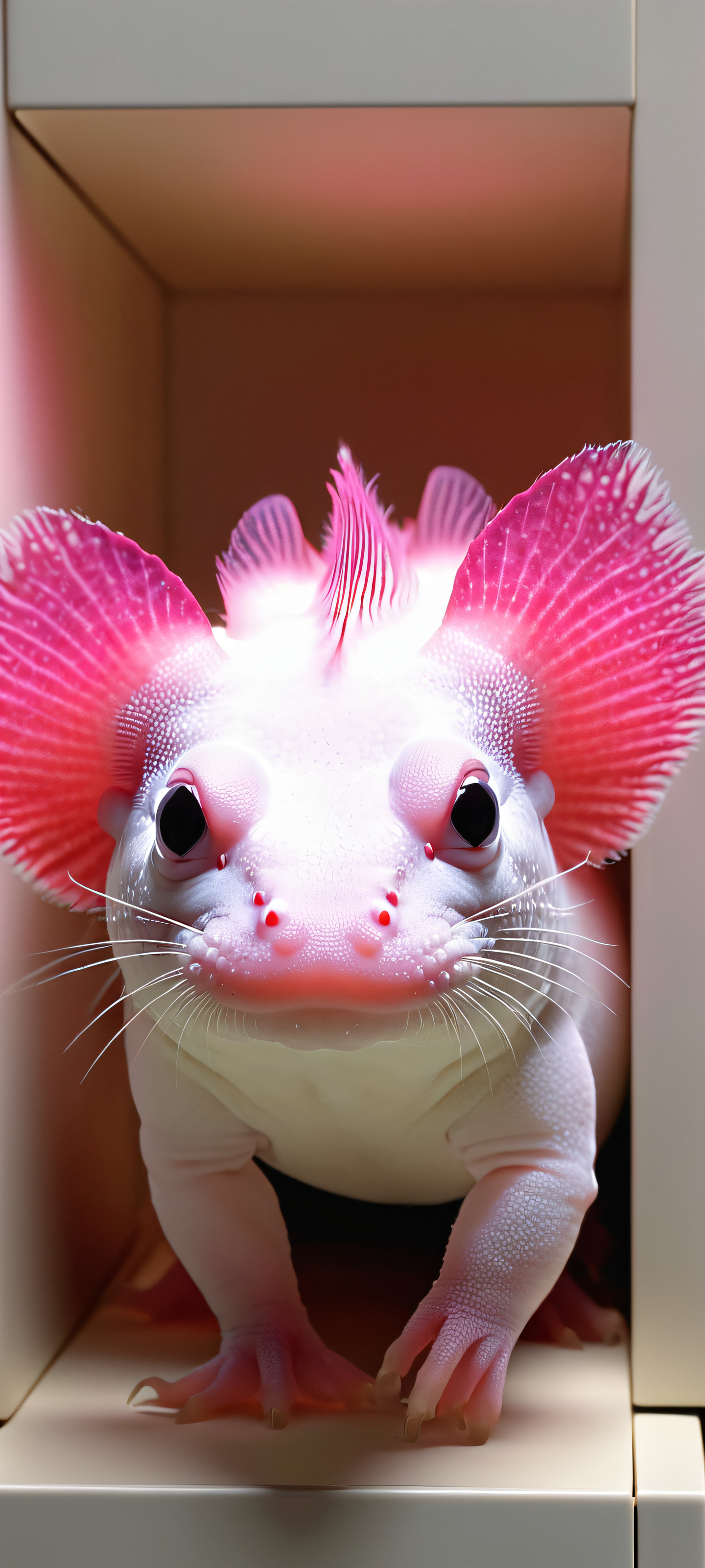 This stunning vertical wallpaper features axolotls gliding through a realistic storage unit, bathed in warm light. Optimized for your iPhone, Samsung Galaxy, or Android home screen, this masterpiece is sure to captivate and inspire. With its 2K QHD resolution and high level of detail, it’s the perfect addition to any mobile device.