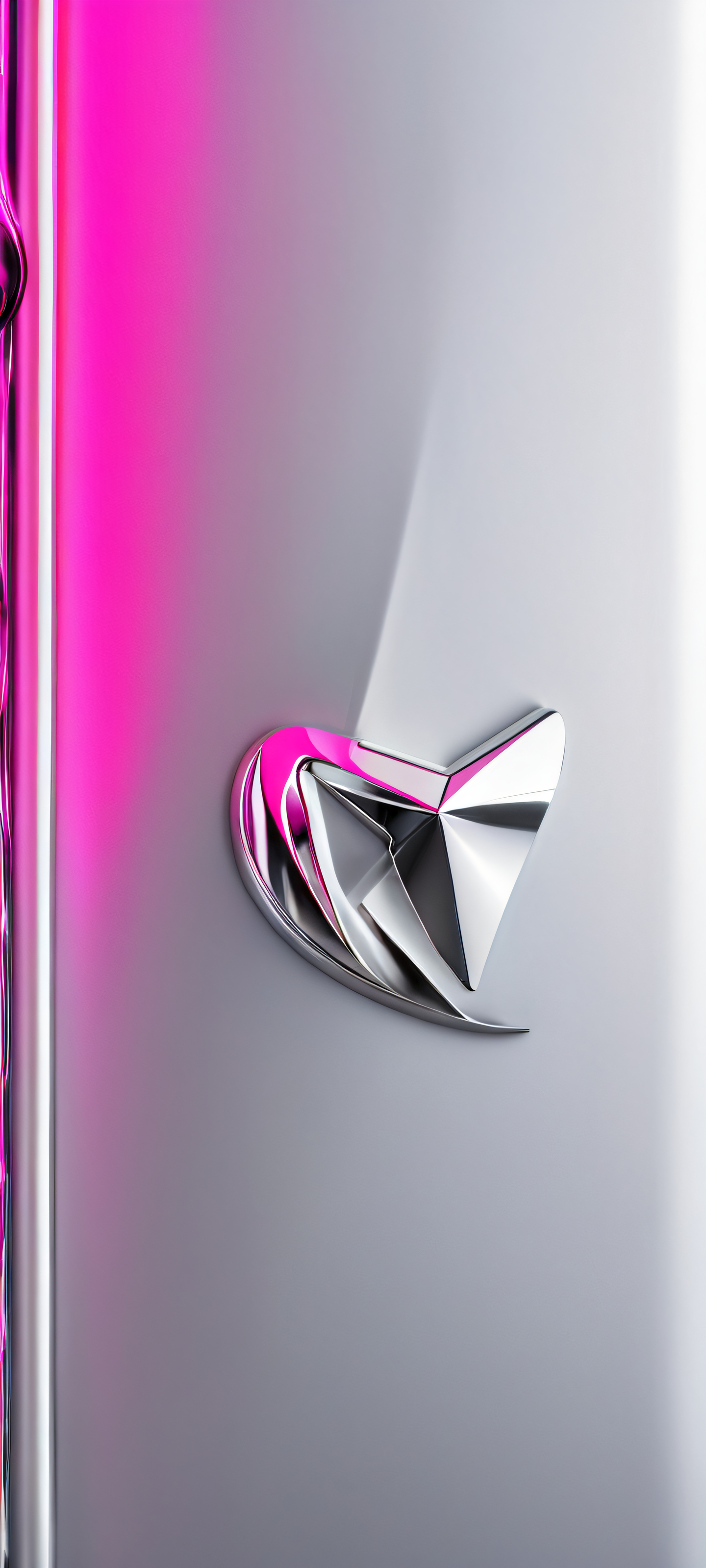 Elevate your mobile phone’s home screen with this stunning vertical masterpiece. Perfectly optimized for iPhone, Samsung Galaxy, and Android devices, this high-key image boasts a 2K QHD resolution, offering the highest quality and most detailed visuals. Let the sleek metallic silver and vibrant neon pink colors transport you to a world of innovation.