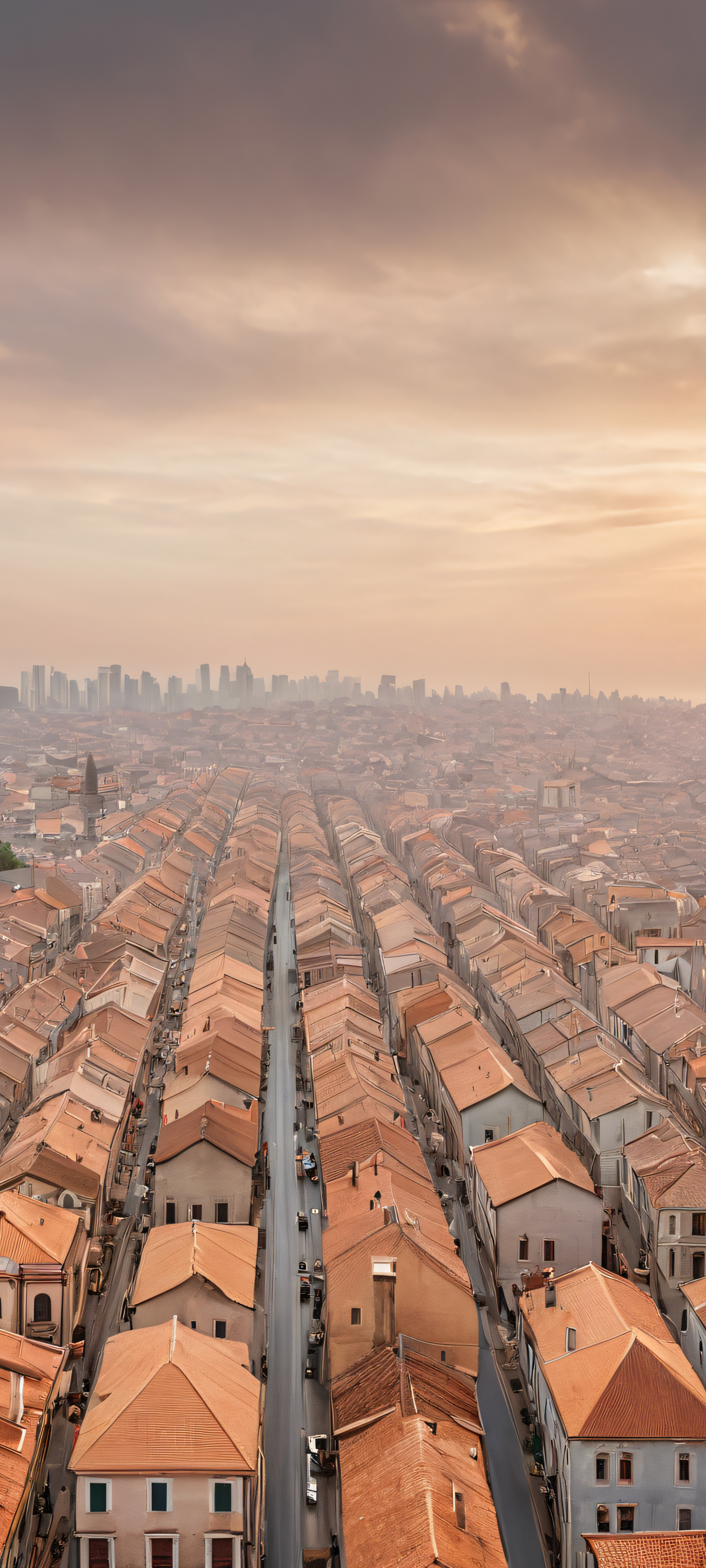 Elevate your mobile experience with this stunning 2K QHD cityscape, perfectly optimized for iPhone, Samsung Galaxy, and Android home screens. Witness the serene beauty of a gray overcast day, with intricately detailed buildings and streets, creating a breathtaking backdrop for your mobile device.