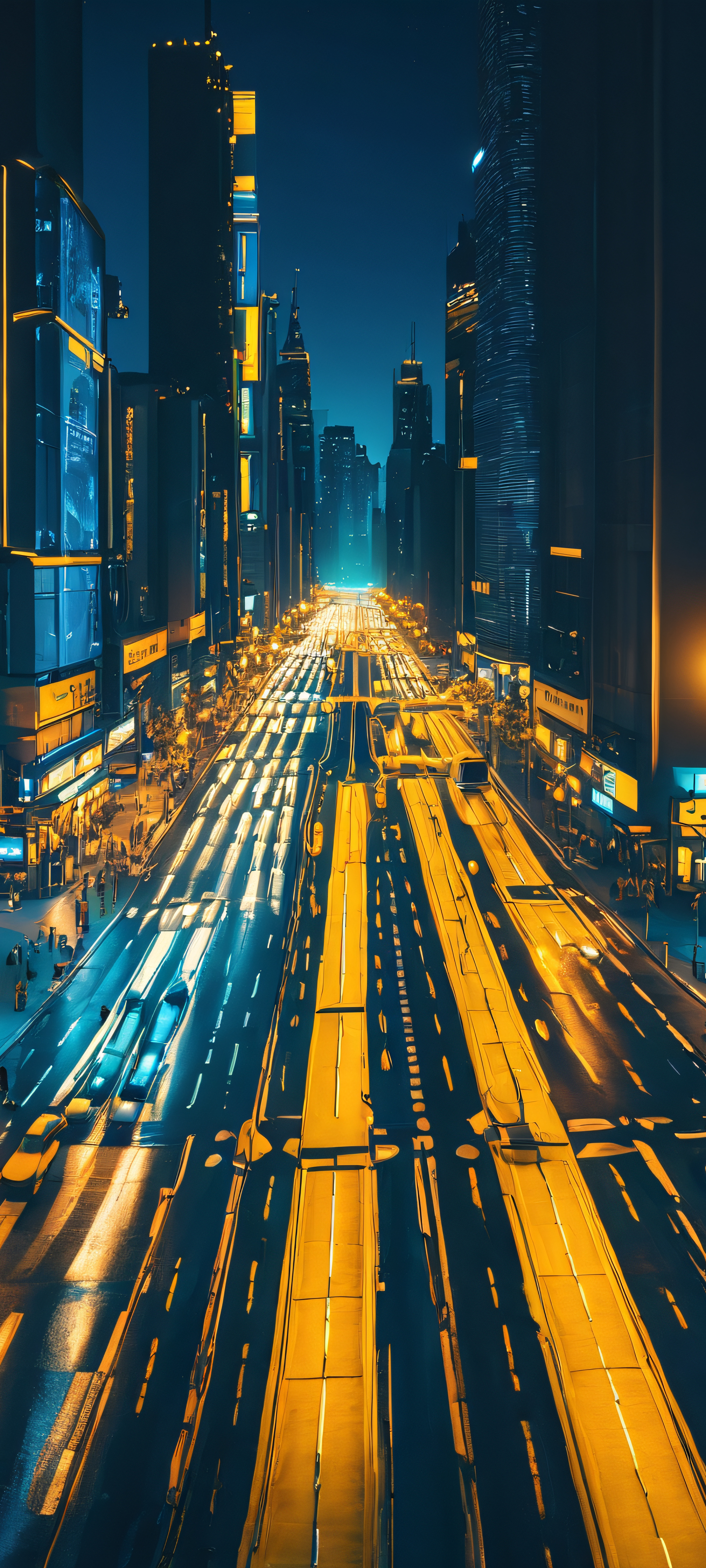Escape to a peaceful urban oasis, perfectly optimized for your iPhone, Samsung Galaxy, or Android home screen. This stunning 2K QHD masterpiece features a breathtaking cityscape at night, illuminated by deep blues, warm whites, and bright yellows. Let the traffic lights and streetlights guide you through this serene and captivating visual experience.