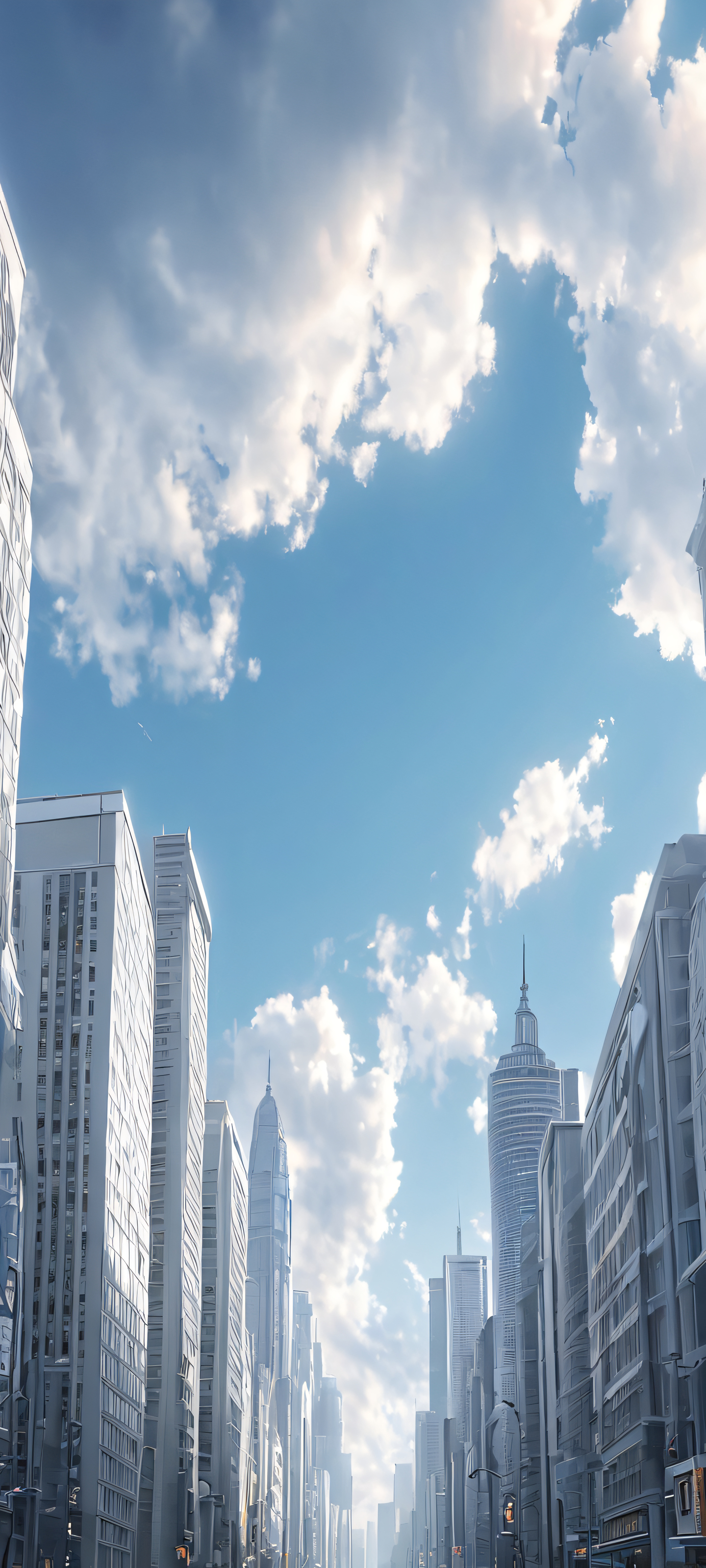 Elevate your mobile experience with this stunning vertical cityscape, perfectly optimized for iPhone, Samsung Galaxy, and Android home screens. The softly-glowing semi-cloudy sky provides a serene backdrop for the bustling city below, making it an ideal choice for those who appreciate urban landscapes.