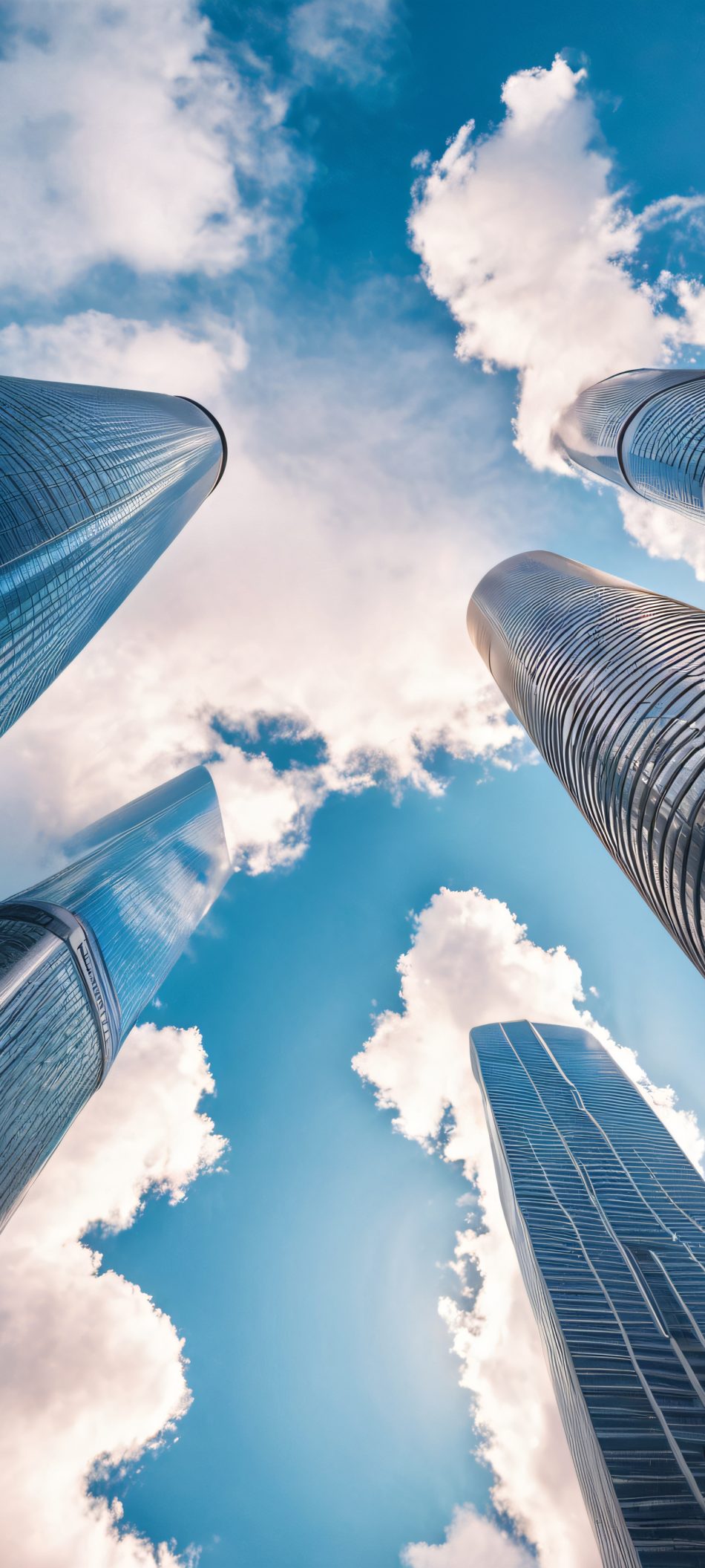 iPhone/Android vertical wallpaper featuring stunning skyscrapers and fluffy clouds. Perfect for your mobile home screen.