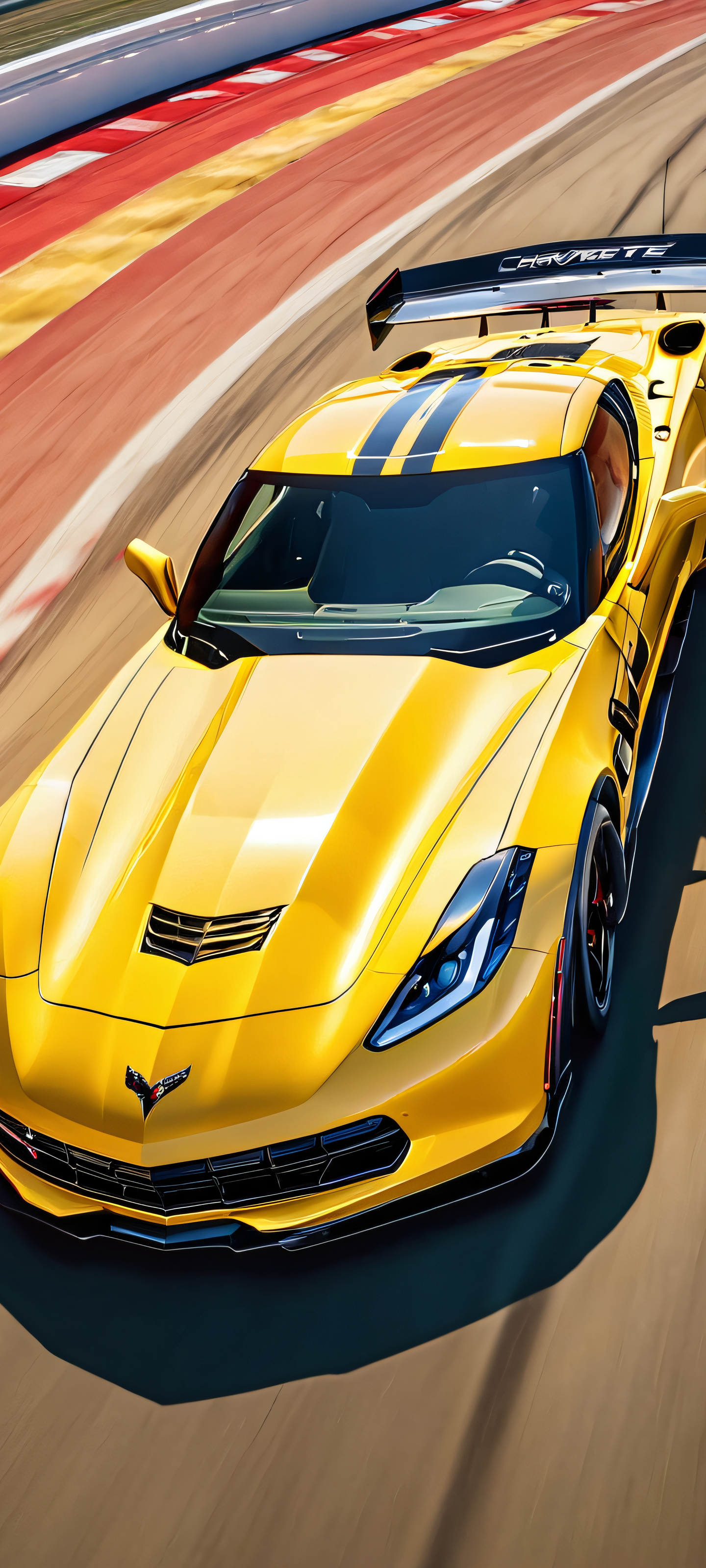 Chevrolet Corvette racing on a sunny day at a realistic racing track, perfect for your iPhone or Android home screen