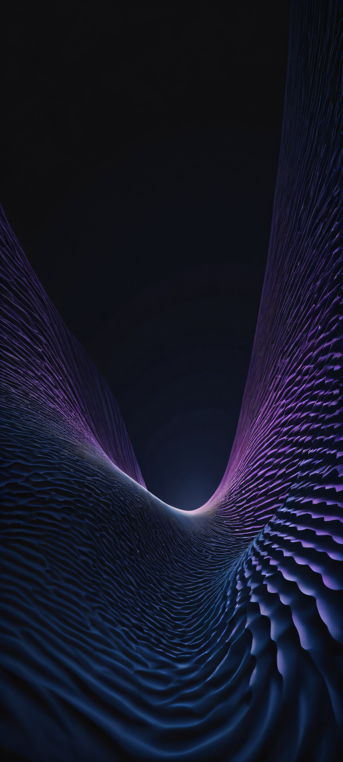 A breathtaking vertical portrait artwork of placed in the lower-middle, intricate micro-details of a dispersion pattern, perfectly clean and empty top half with vast pure void, simple background design, Award-winning digital art, stunning visual impact, and pristine clarity, reminiscent of epic desktop wallpapers, Deep perfect blacks, striking crisp contrast, and elegant luminescent accents in Dark Mode Aesthetic, dominant palette of deep blues and purples, subtly hinting at the dispersion pattern’s mesmerizing micro-details, elegant low-key lighting, deep perfect blacks, striking contrast, sleek dark mode aesthetic, luminescent accents, deep rich colors, portrait composition, centered subject in the lower middle, perfectly clean and smooth top half for UI, extreme depth of field blurred background, highly textured surfaces, intricate micro-details, physically based rendering, award-winning digital art, epic breathtaking scale, stunning visual impact, perfect composition, macOS wallpaper aesthetic, masterpiece, 2K QHD resolution, 9:20 aspect ratio.
