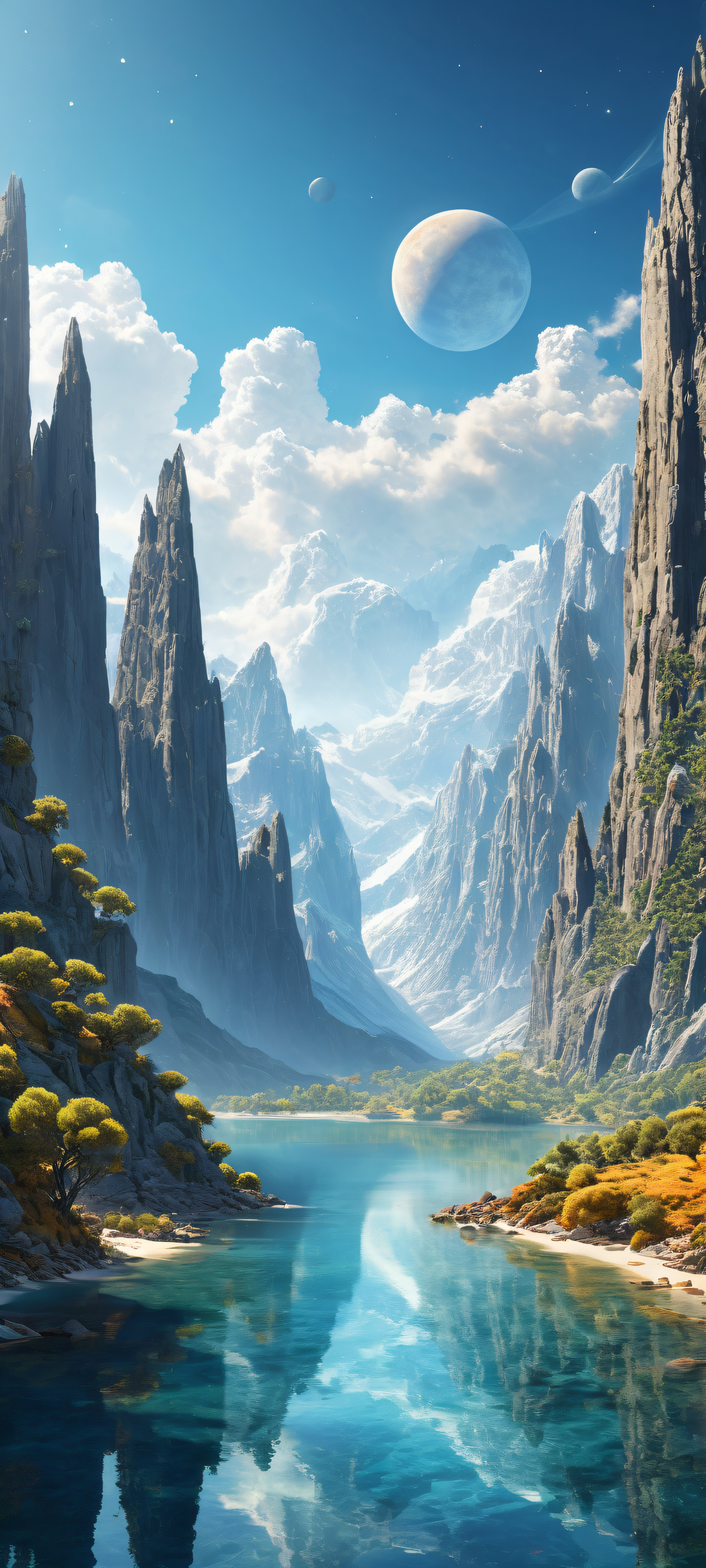 Ethereal landscape artwork featuring celestial bodies and cosmic structures on iPhone/Android home screen. Perfectly optimized for iPhone, Samsung Galaxy, and Android devices.