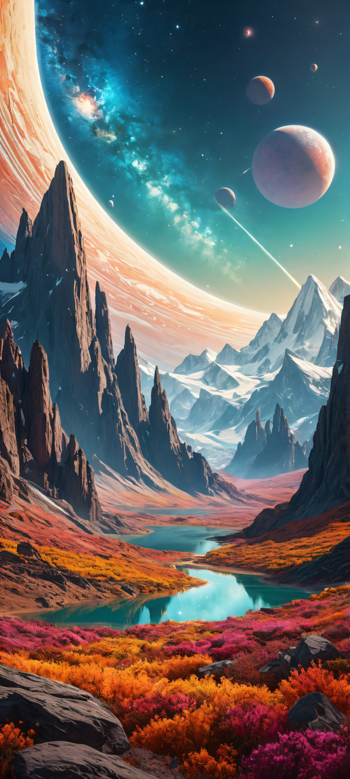 This stunning wallpaper is perfectly optimized for your iPhone, Samsung Galaxy, or Android home screen. With a focus on visual storytelling, it transports you to a futuristic world where cosmic wonders await. The result is an award-winning digital art piece that exudes excellence in terms of clarity, texture, and composition.