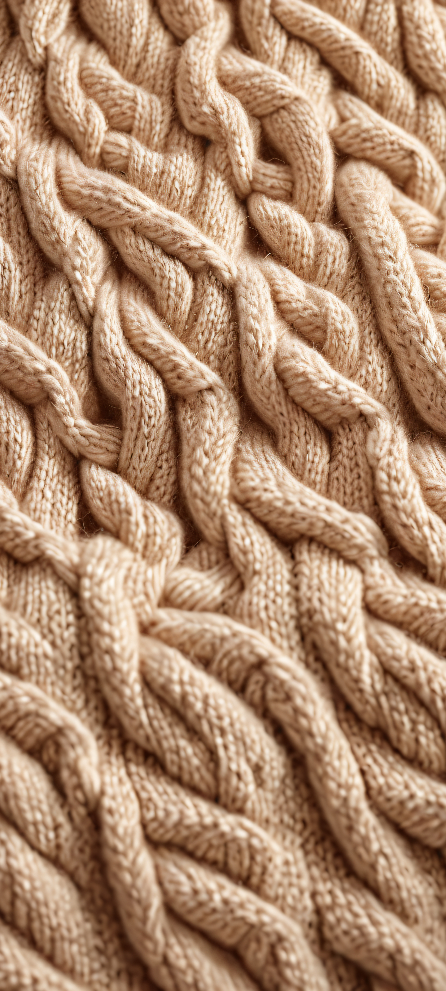 iPhone and Android users will love this breathtaking vertical wallpaper of a cozy sweater masterpiece indoors, featuring warm cream and brown hues.