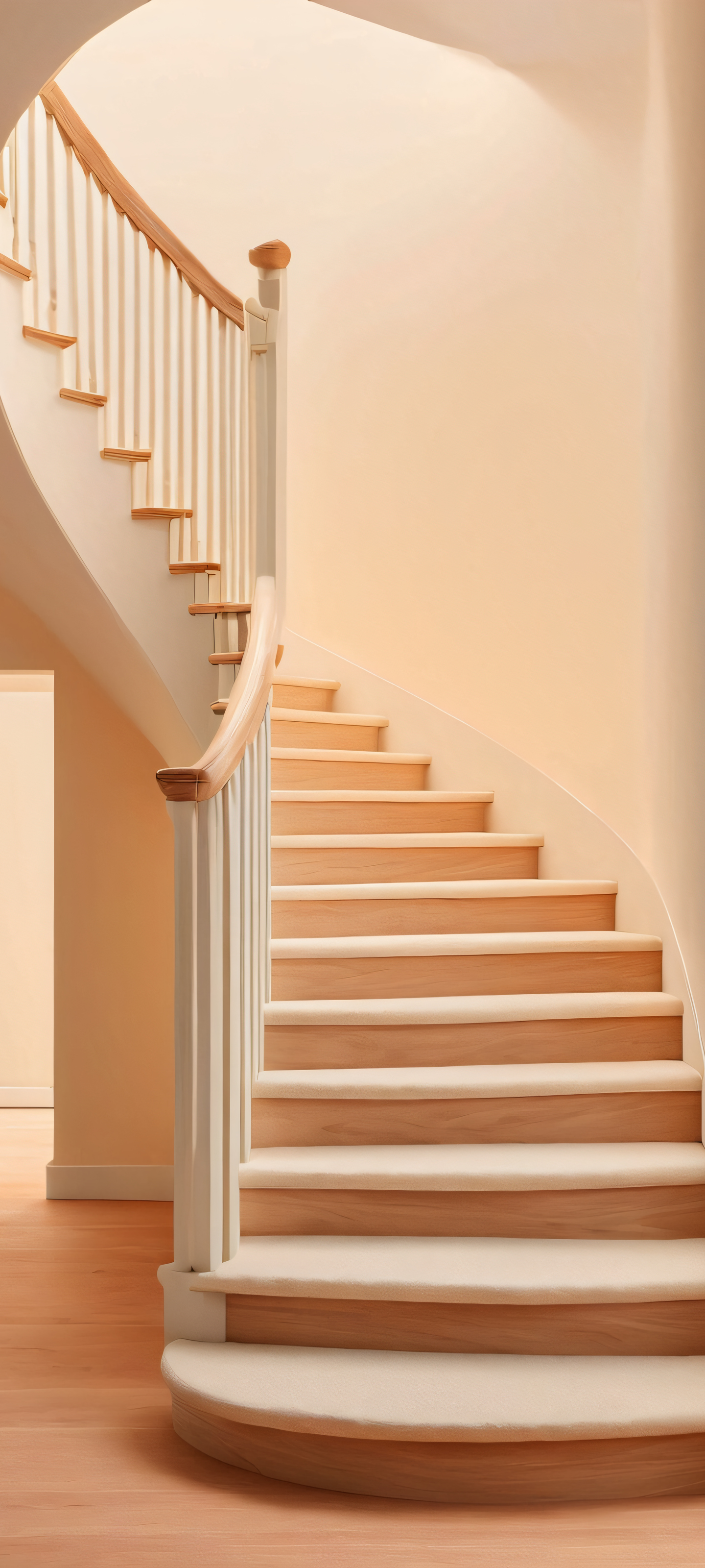 Elevate your mobile home screen with this stunning 2K QHD masterpiece, featuring a beautifully designed wooden staircase in a soft, creamy hue. Perfectly optimized for iPhone, Samsung Galaxy, and Android home screens, this breathtaking vertical wallpaper is sure to transport you to a cozy retreat.