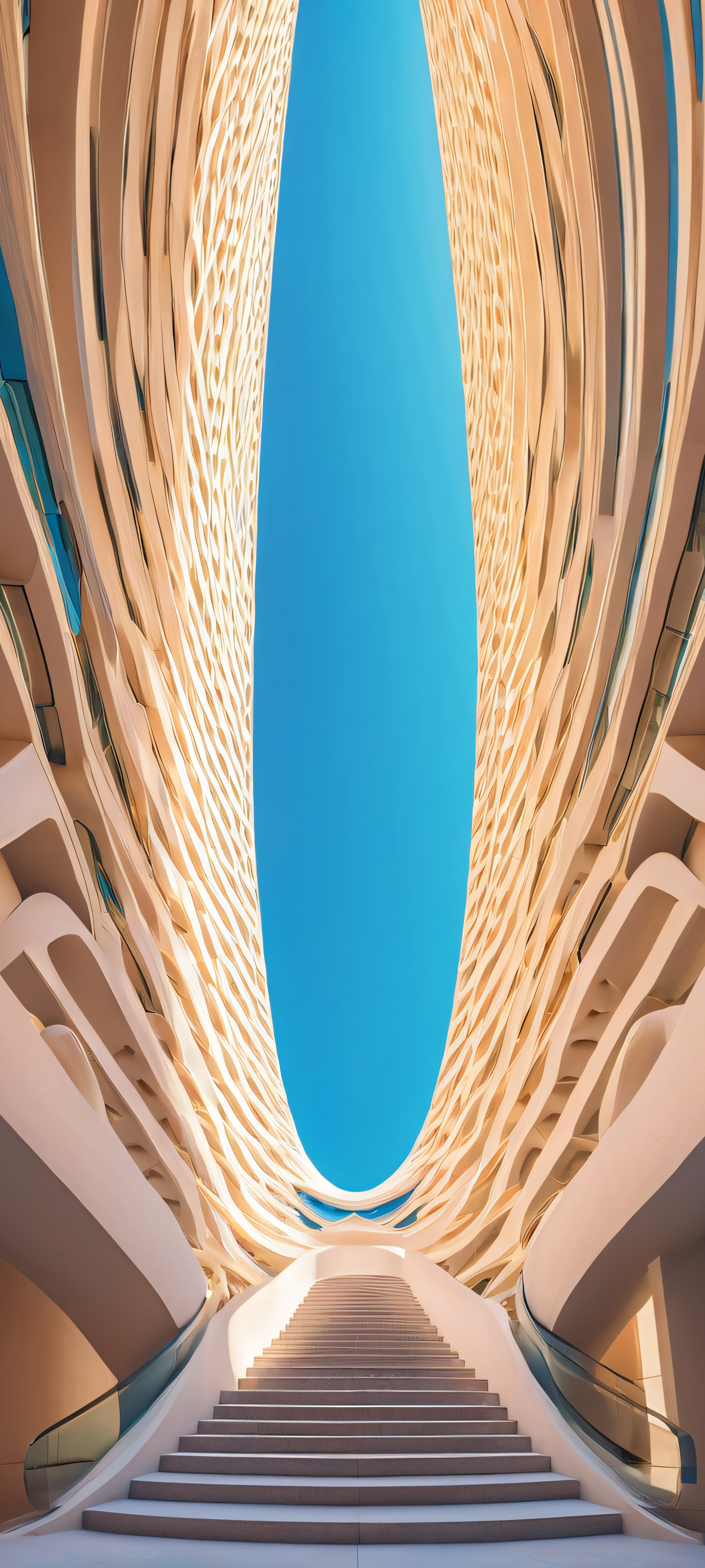 Elevate your iPhone, Samsung Galaxy, or Android home screen with this breathtaking vertical mobile phone wallpaper. Perfectly optimized for QHD resolution, this masterpiece showcases the beauty of curved architecture in a serene and minimalist urban landscape. Highly detailed and highest quality for an unparalleled visual experience.