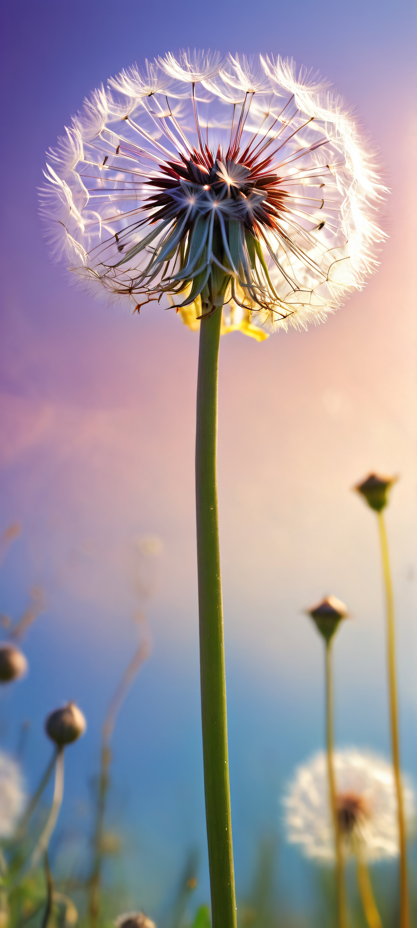 Elevate your iPhone, Samsung Galaxy, or Android home screen with this breathtaking vertical portrait artwork. The perfectly clean top half provides ample space for UI widgets, while the whimsical dandelion in mid-air captivates with its stunning visual impact and pristine clarity. Experience the serenity of the cosmos on your mobile device.
