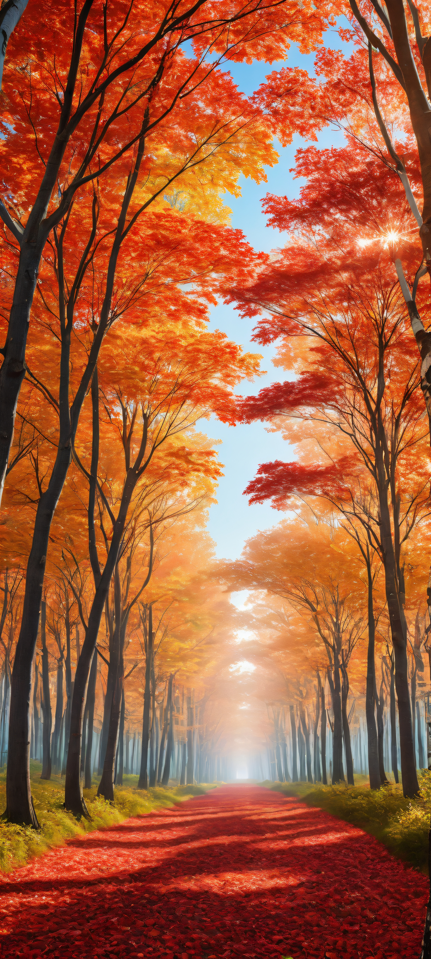 Tauchen Sie ein in dieses atemberaubende digitale Kunstwerk, where a serene blue sky meets a vibrant autumn maple grove with crimson canopy and intricate micro-details. This masterpiece is specifically designed to be perfectly optimized for your iPhone, Samsung Galaxy, oder Android-Startbildschirm, showcasing stunning visual impact and ethereal lighting that will leave you mesmerized.
