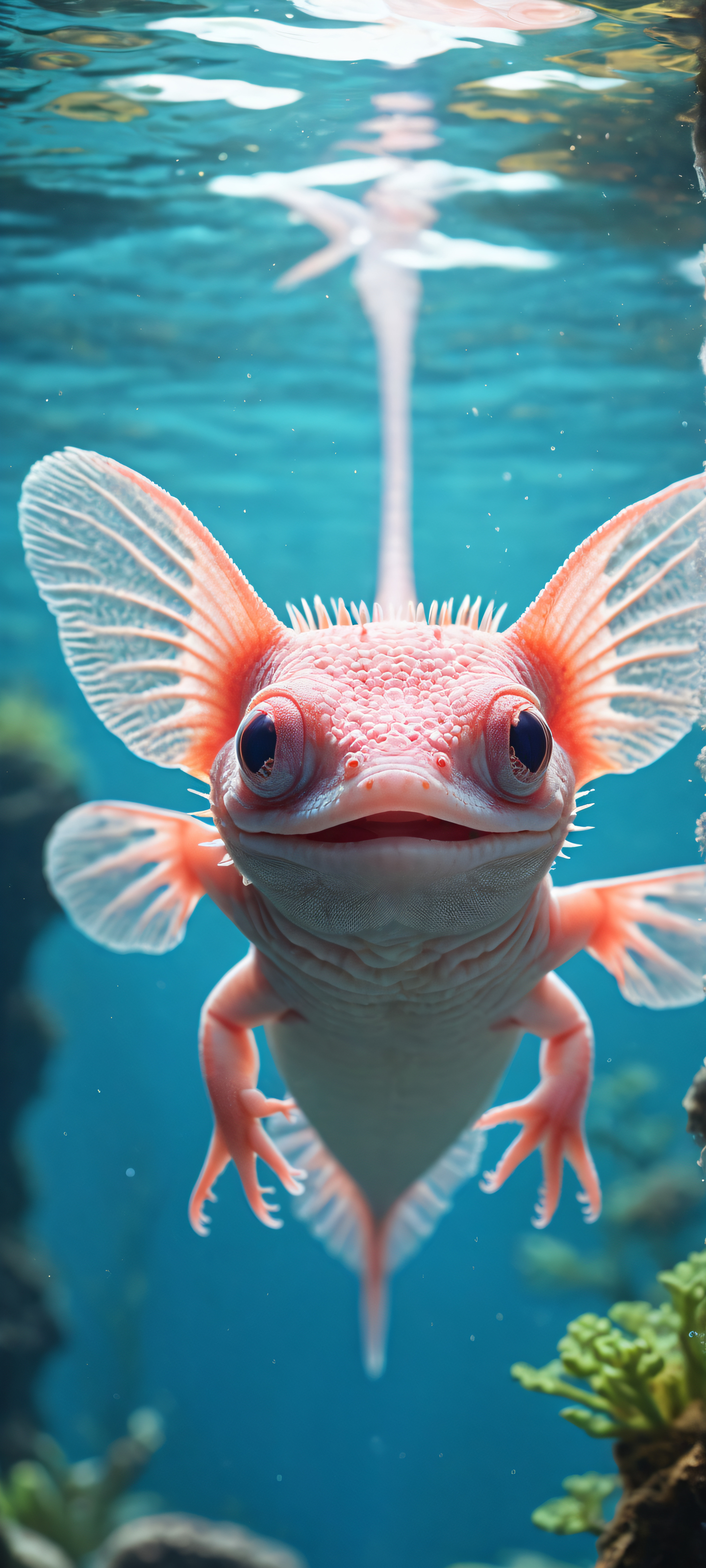 Erhöhen Sie Ihr iPhone, Samsung Galaxy, or Android home screen with this stunning digital art masterpiece. Award-winning visuals optimized for a perfect blend of clarity, color, and whimsy. Perfectly centered in the lower middle, this captivating axolotl portrait boasts ethereal lighting, radiant colors, and exquisite micro-details.