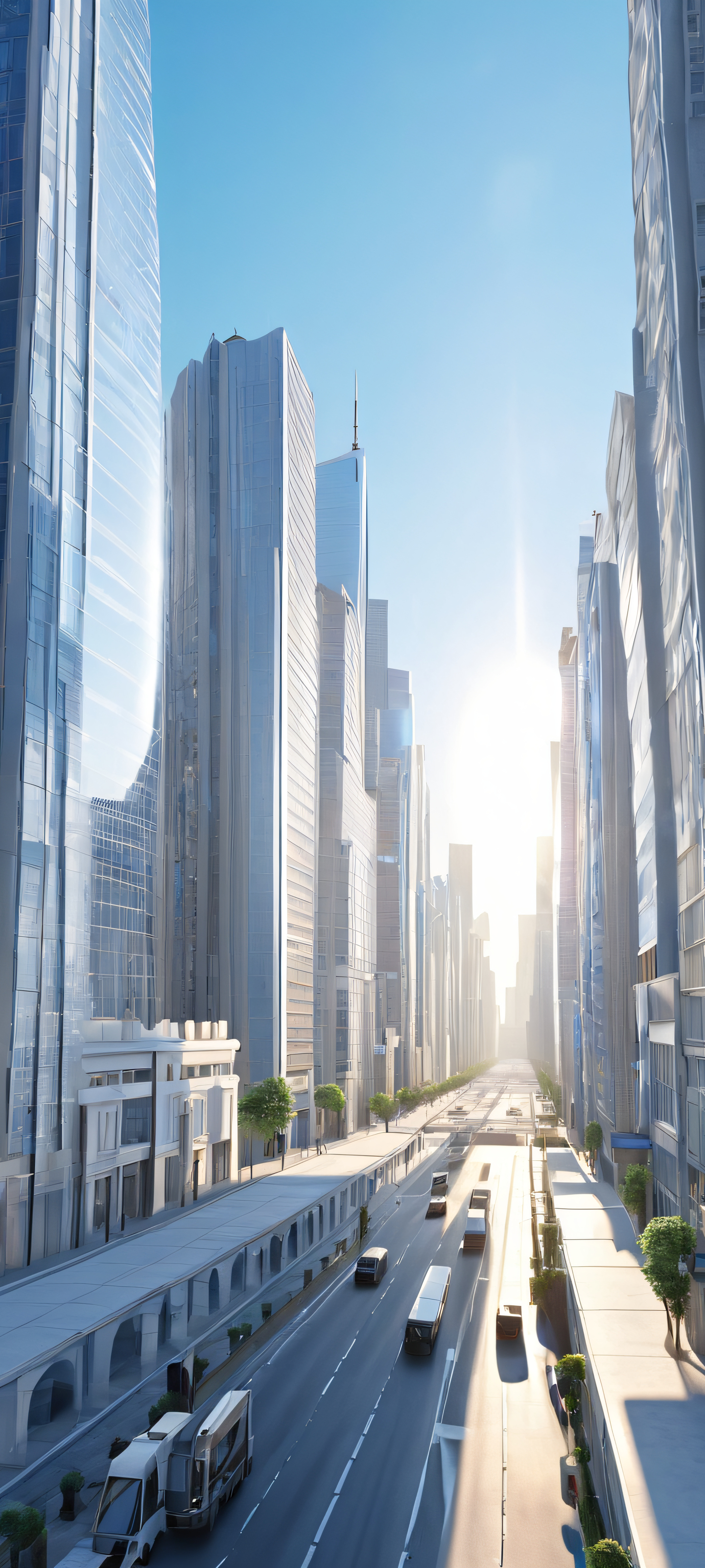 Immerse yourself in the beauty of this stunning 2K QHD wallpaper, expertly crafted to adorn your iPhone, Samsung Galaxy, oder Android-Startbildschirm. The harsh sunlight casts a warm glow on the city’s towering skyscrapers, while the sky transforms into a kaleidoscope of gray, blue, and white hues. A masterpiece for urban enthusiasts.