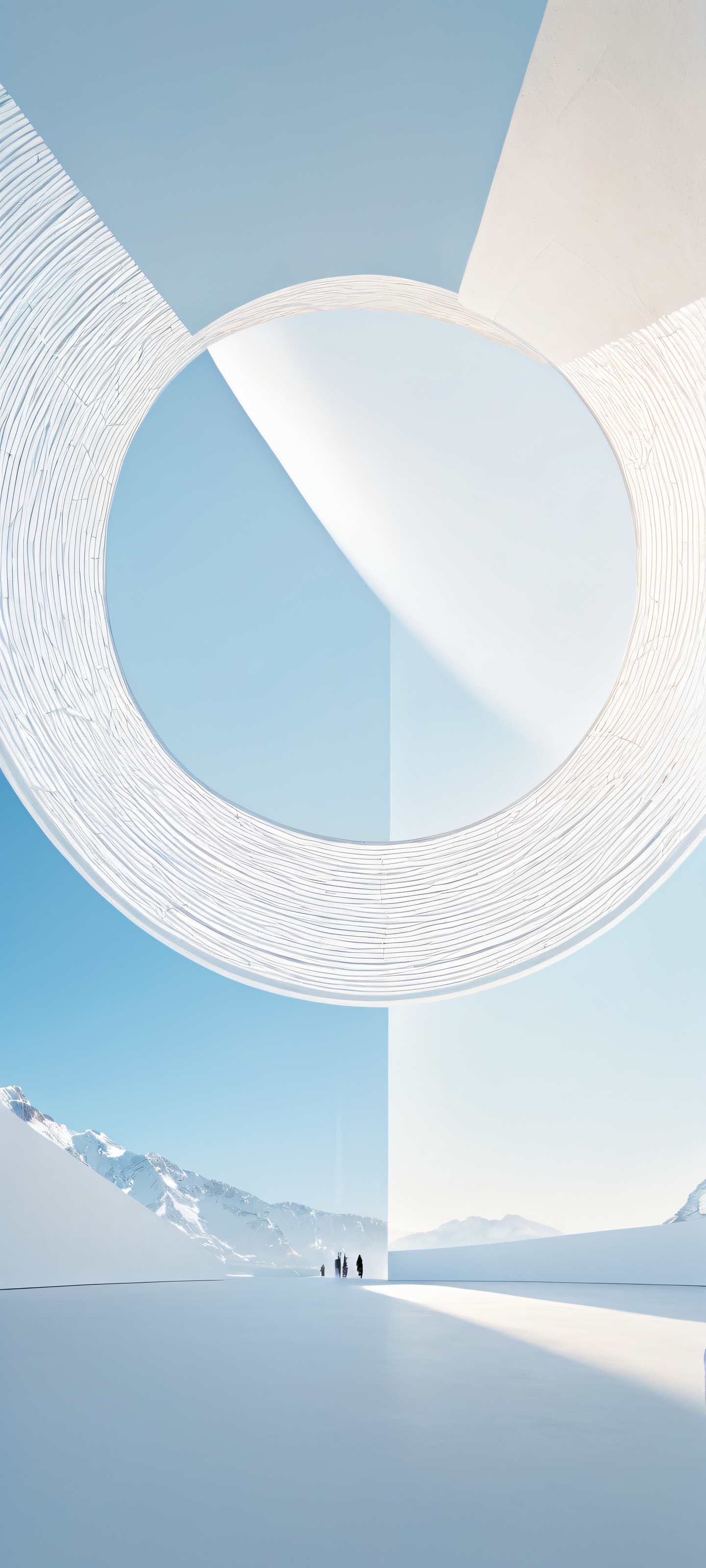 Elevate your mobile experience with this breathtaking award-winning artwork, perfekt optimiert für das iPhone, Samsung Galaxy, und Android-Startbildschirme. The dominant pastel blue and white color palette creates an otherworldly sense of calm, while the ethereal lighting and ray-traced reflections add depth and visual impact.