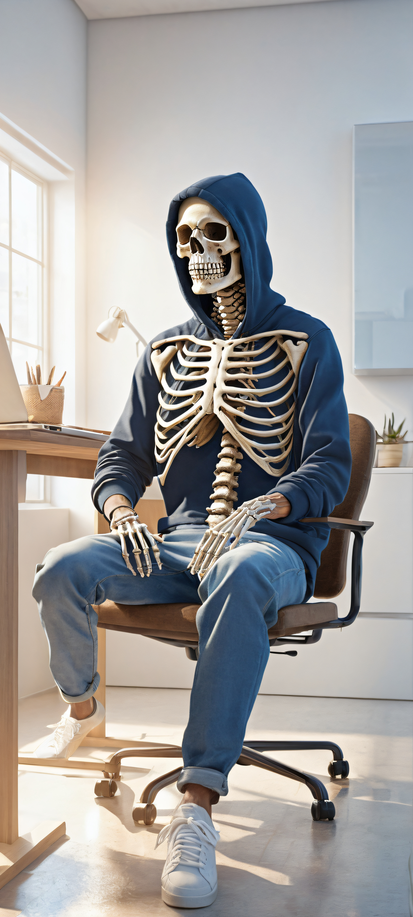 Step into this breathtaking vertical portrait artwork, perfekt optimiert für Ihr iPhone, Samsung Galaxy, und Android-Startbildschirme. The stunning visual impact of this masterpiece will transport you to a world of ethereal dreamscape, where the ancient skeleton’s story unfolds amidst cobwebs, computers, and radiant colors. A true work of art, reminiscent of a macOS wallpaper, in pristine 2K QHD resolution with a 9:20 aspect ratio.