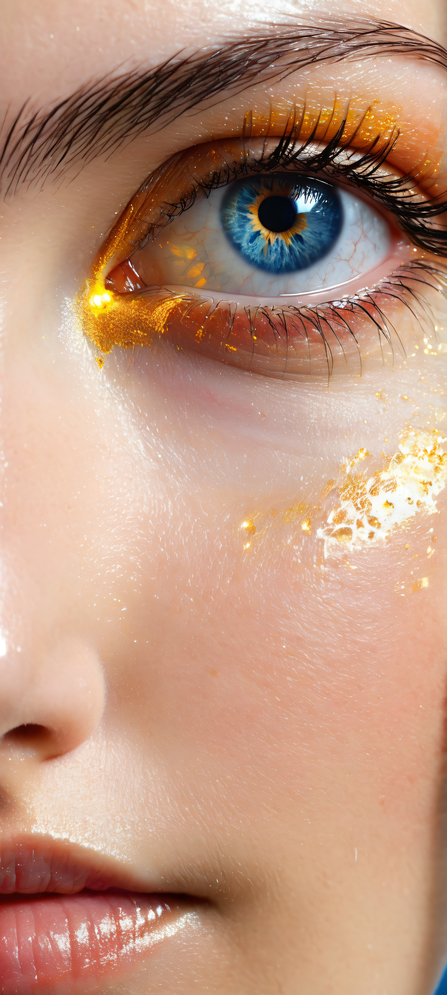 A breathtaking vertical portrait artwork of The eye placed in the lower-middle, intricate micro-details of mechanical elements and dark patterns. The surrounding mechanical components showcase insane micro-details., Perfectly clean and empty top half with vast pure void, allowing UI widgets to breathe. A vast, darkened expanse on the right side, punctuated by mechanical elements., Award-winning digital art, pristine clarity, blending cinematic influences with a touch of futuristic flair., Ethereal lighting with bright, radiant colors, ray-traced reflections, and pristine clarity, casting a warm glow over the eye and surrounding components., Dominant palette features bold shades of yellow and blue, accented with metallic grays and darkened silhouettes., ethereal lighting, radiant, brilliant colors, ray traced reflections, pristine clarity, portrait composition, centered subject in the lower middle, perfectly clean and smooth top half for UI, extreme depth of field blurred background, highly textured surfaces, intricate micro-details, physically based rendering, award-winning digital art, epic breathtaking scale, stunning visual impact, perfect composition, macOS wallpaper aesthetic, masterpiece, 2K QHD resolution, 9:20 aspect ratio.
