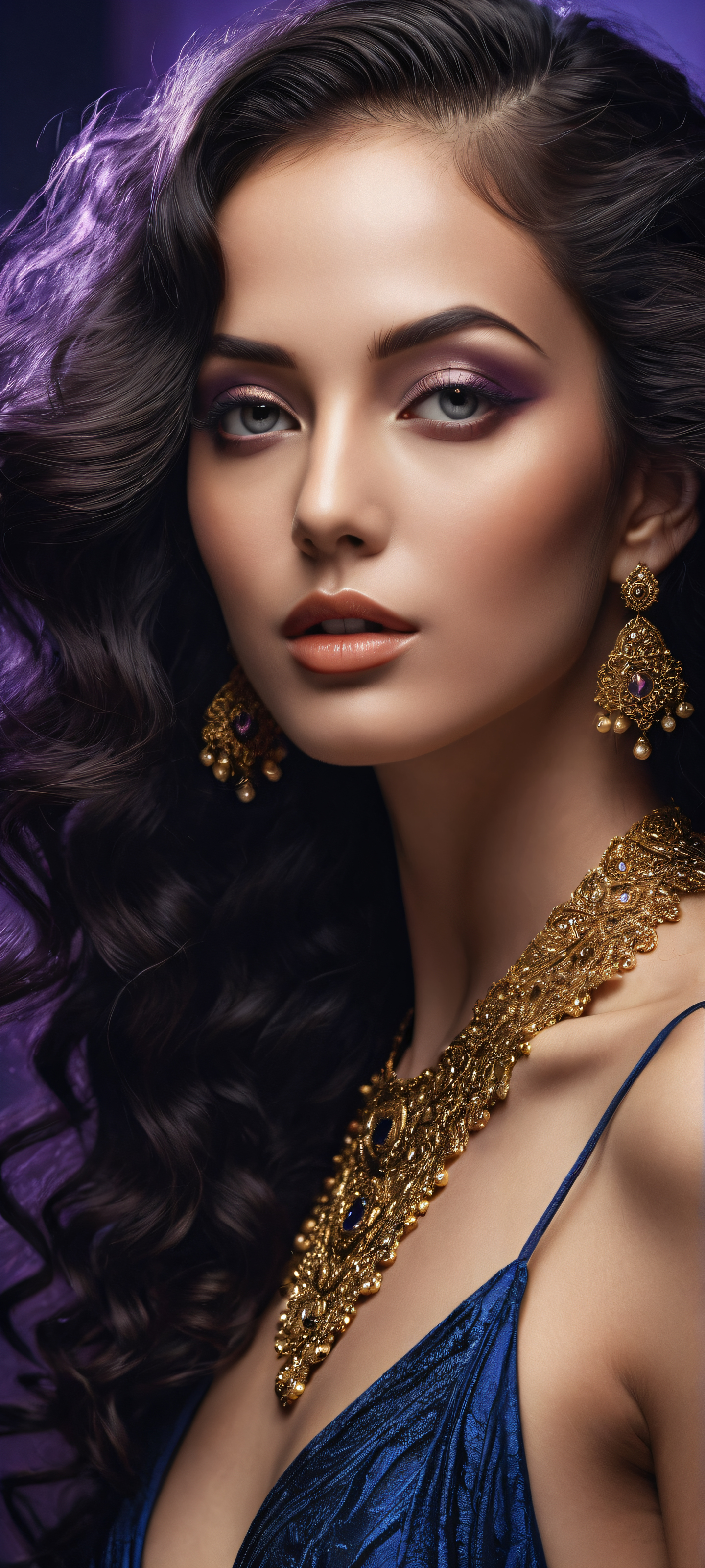 This breathtaking vertical portrait artwork is perfectly optimized for your iPhone, Samsung Galaxy, oder Android-Startbildschirm. The stunning female figure, set against a sleek dark mode aesthetic with deep perfect blacks and striking contrast, exudes sophistication and mystique. Her flowing locks are rendered with unparalleled attention to detail and precision, creating an atmosphere of opulence.