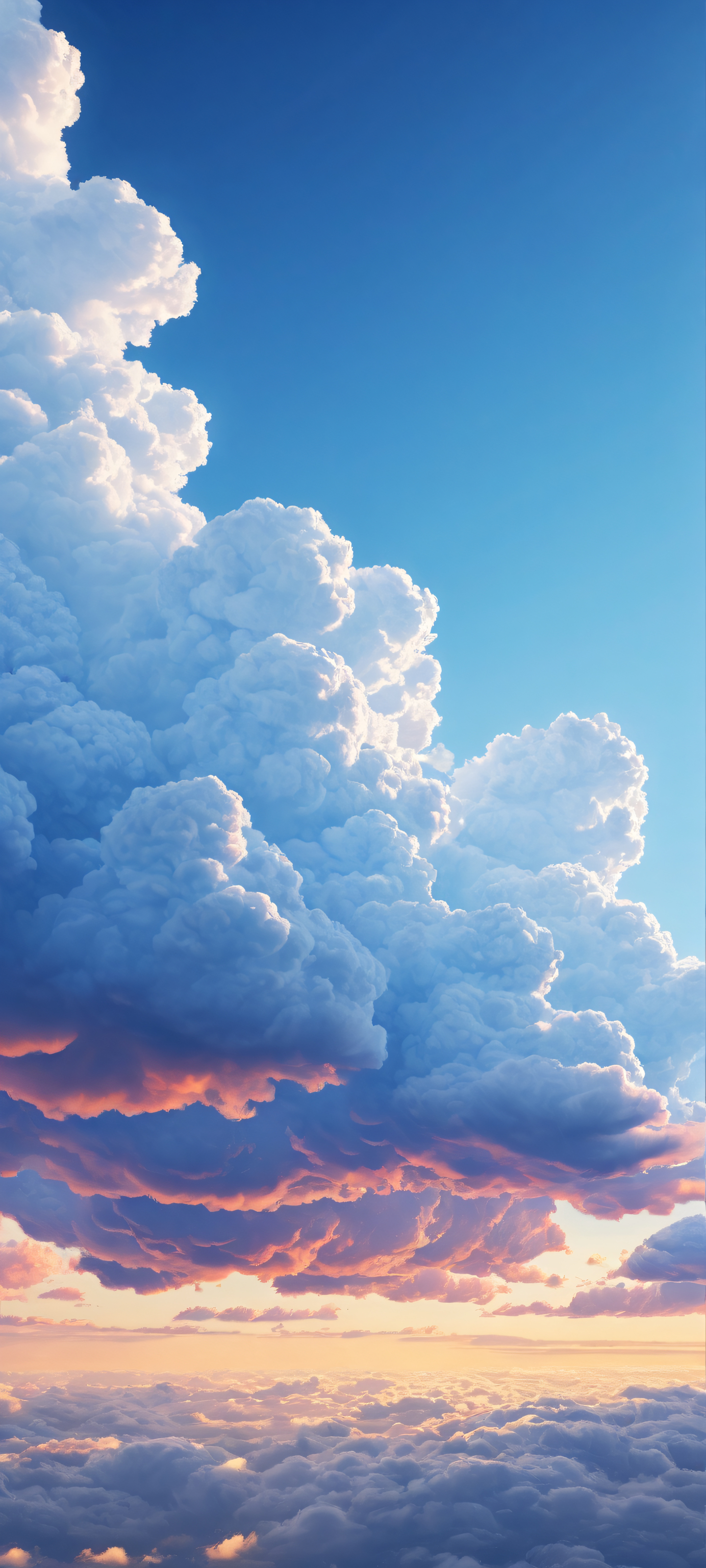 A breathtaking vertical portrait artwork of Floating Clouds placed in the lower-middle with insane micro-details., A perfectly clean and empty top half with vast pure void for UI widgets, allowing for seamless integration., Award-winning digital art, stunning visual impact. A true masterpiece., Ethereal lighting with brilliant blue hues, capturing the essence of a serene sky at dusk., #4567B7; #87CEEB; #4C516D; #F2F4FF, ethereal lighting, radiant, brilliant colors, ray traced reflections, pristine clarity, portrait composition, centered subject in the lower middle, perfectly clean and smooth top half for UI, extreme depth of field blurred background, highly textured surfaces, intricate micro-details, physically based rendering, award-winning digital art, epic breathtaking scale, stunning visual impact, perfect composition, macOS wallpaper aesthetic, masterpiece, 2K QHD resolution, 9:20 aspect ratio.