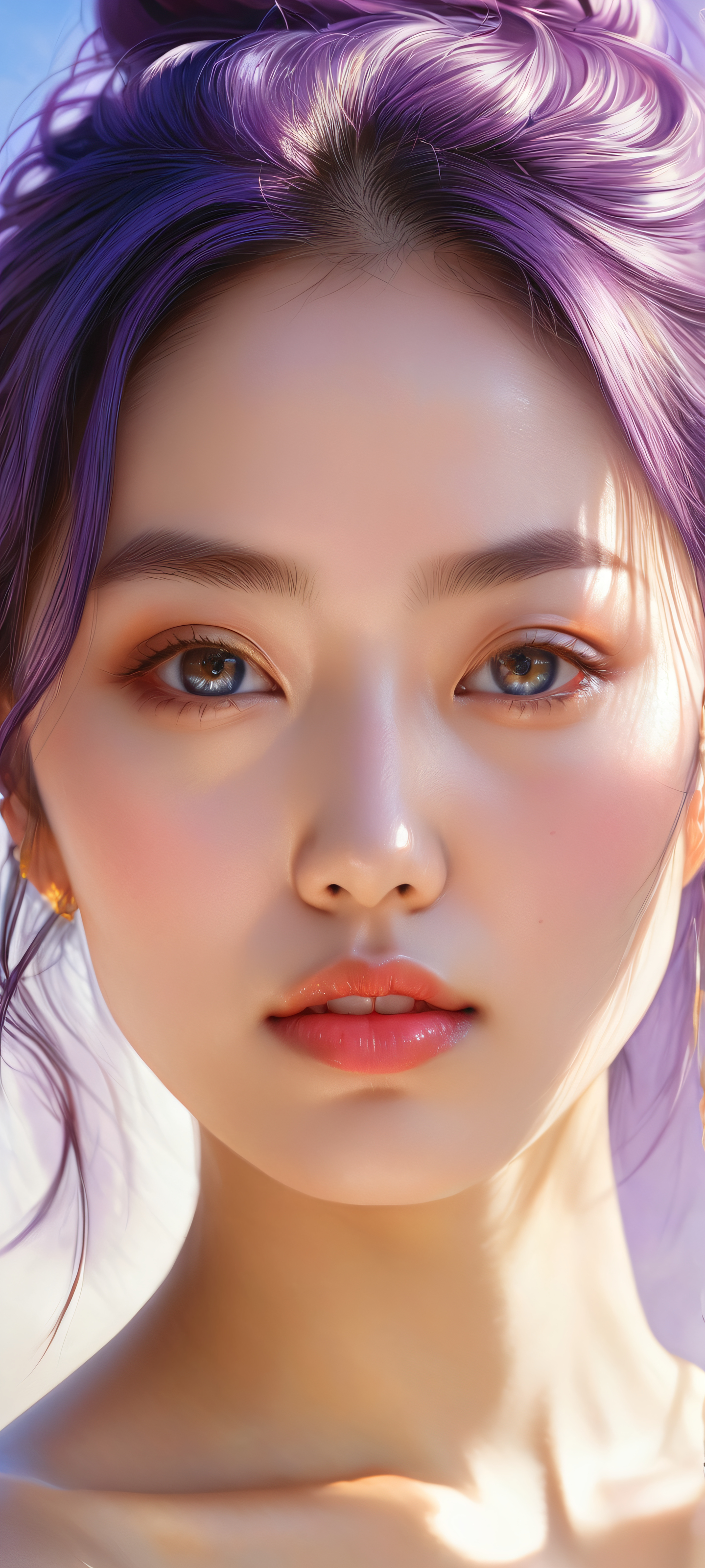 Experience the serenity and wonder of this breathtaking digital art masterpiece, perfekt optimiert für Ihr iPhone, Samsung Galaxy, oder Android-Startbildschirm. The realistic portrait of a young woman is set against an awe-inspiring background that blends seamlessly into the pure void above, allowing UI widgets to breathe freely. This 2K QHD resolution artwork with 9:20 aspect ratio is a stunning visual treat that evokes the subtle nuances of wabisabi.
