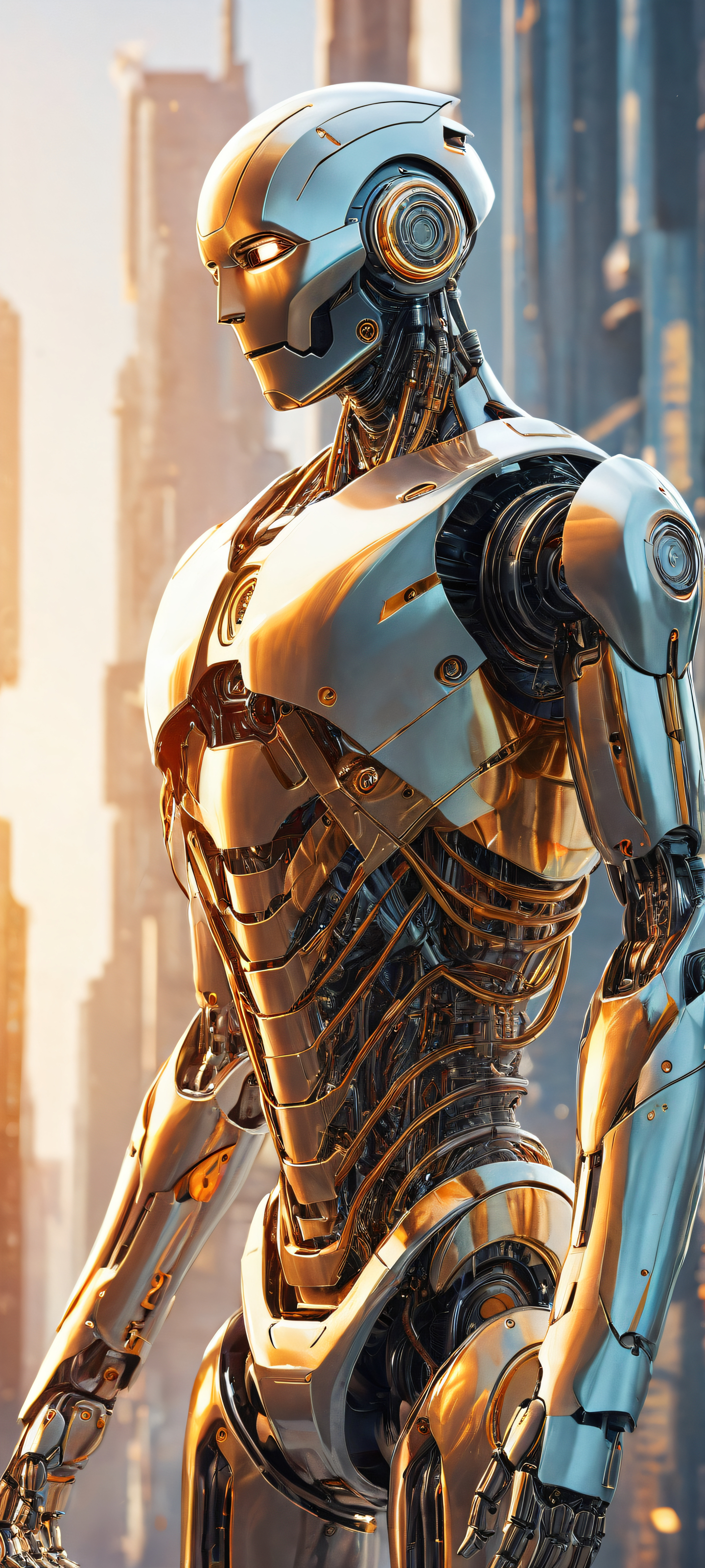 Immerse yourself in this breathtaking digital artwork, perfekt optimiert für Ihr iPhone, Samsung Galaxy, und Android-Startbildschirme. The ethereal lighting and brilliant colors create a futuristic feel, while the ray-traced reflections add depth and dimension to the robot’s metallic body.