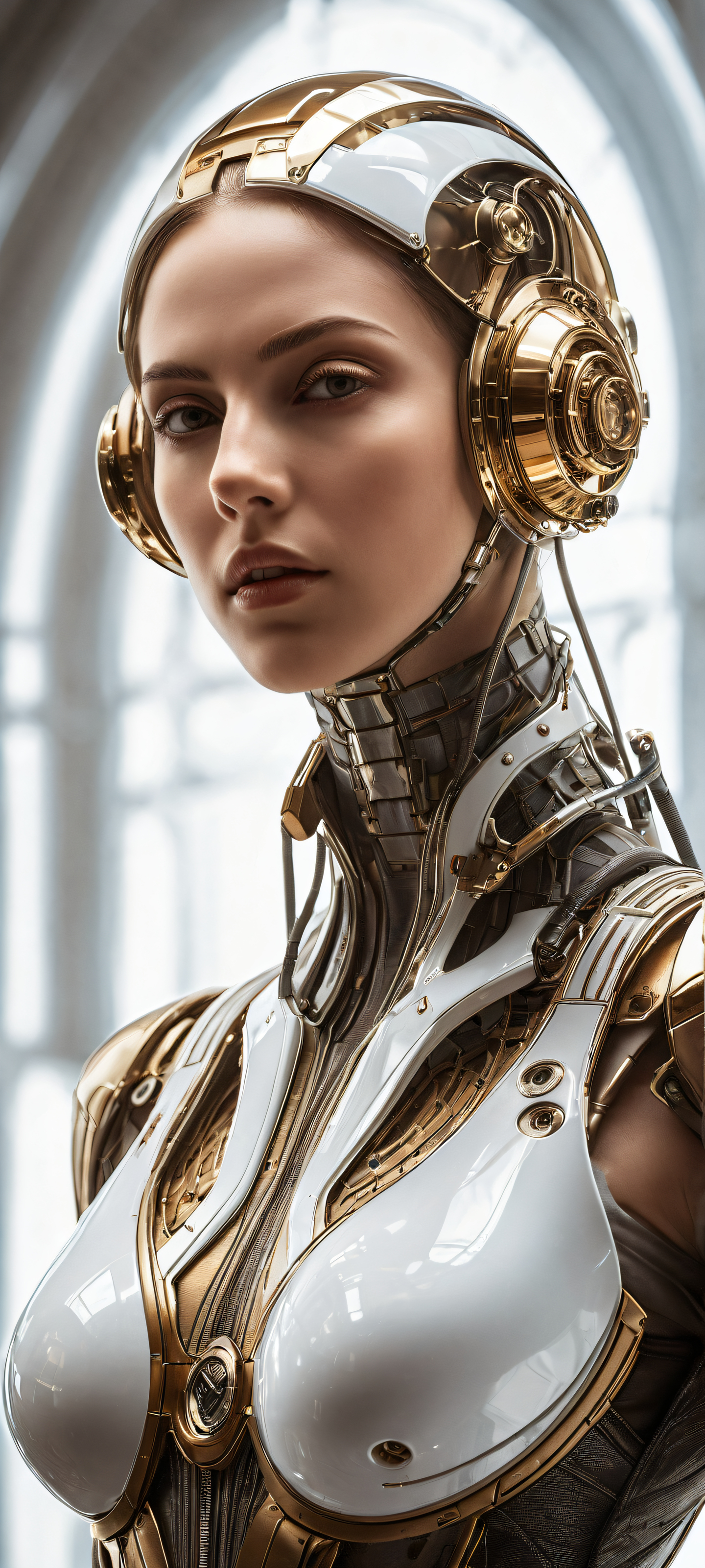 A breathtaking vertical portrait artwork of 9S, placed in the lower-middle with intricate micro-details of his machinery and futuristic attire, showcasing the complexity of his character amidst a vast, empty void., A perfectly clean and empty top half, leaving ample breathing space for UI widgets, with a vast pure void below, creating a sense of depth and dimensionality., Award-winning digital art, featuring stunning visuals and pristine clarity, perfect for an epic desktop wallpaper, reminiscent of cinematic storytelling., Ethereal lighting, with a blend of soft, radiant colors and brilliant highlights, accentuating the metallic sheen of 9S’ machinery and adding an air of mystique to the scene., A palette dominated by cool whites and silvery tones, punctuated by warm hints of brown and golden light, evoking the sense of a technological utopia., ethereal lighting, radiant, brilliant colors, ray traced reflections, pristine clarity, portrait composition, centered subject in the lower middle, perfectly clean and smooth top half for UI, extreme depth of field blurred background, highly textured surfaces, intricate micro-details, physically based rendering, award-winning digital art, epic breathtaking scale, stunning visual impact, perfect composition, macOS wallpaper aesthetic, masterpiece, 2K QHD resolution, 9:20 aspect ratio.