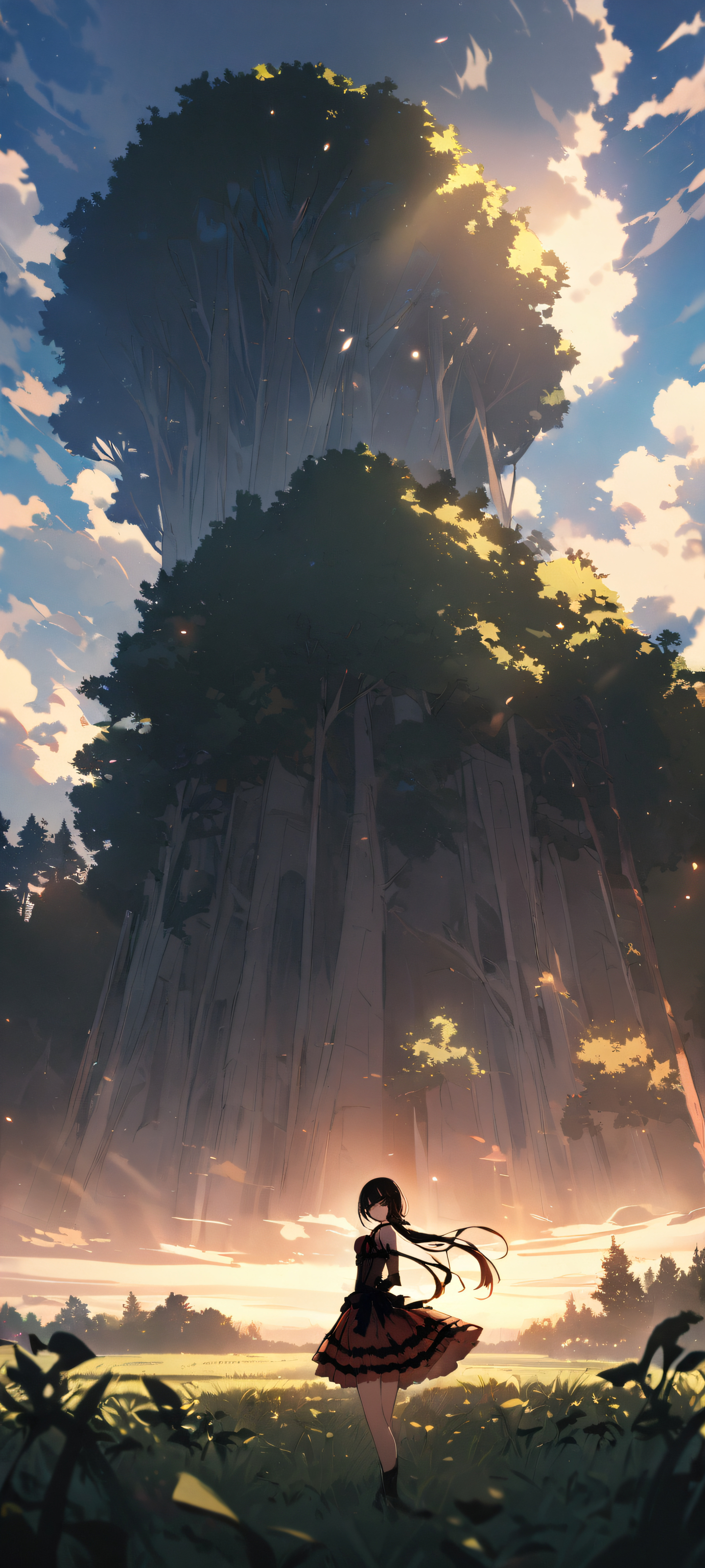 Immerse yourself in a peaceful anime scene, expertly crafted for your perfect mobile wallpaper. This stunning masterpiece features Kurumi Tokisaki, Date A Live’s beloved character, gazing directly at you. The serene setting, with its towering trees and vintage train, creates a sense of calm, making it perfectly optimized for your iPhone or Samsung Galaxy home screen.