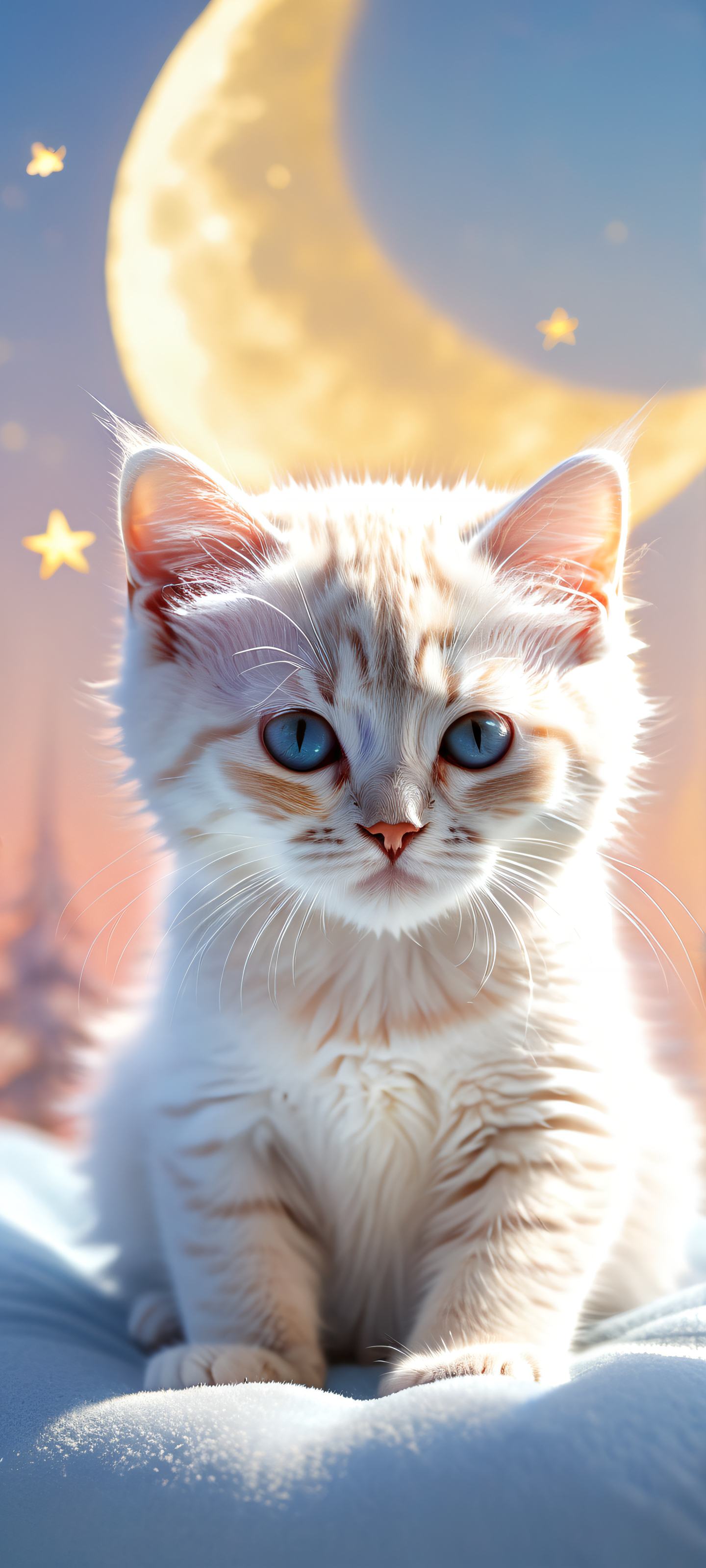 Moonlit Kitten Dreamscapes 2K Phone Wallpaper Free Download: