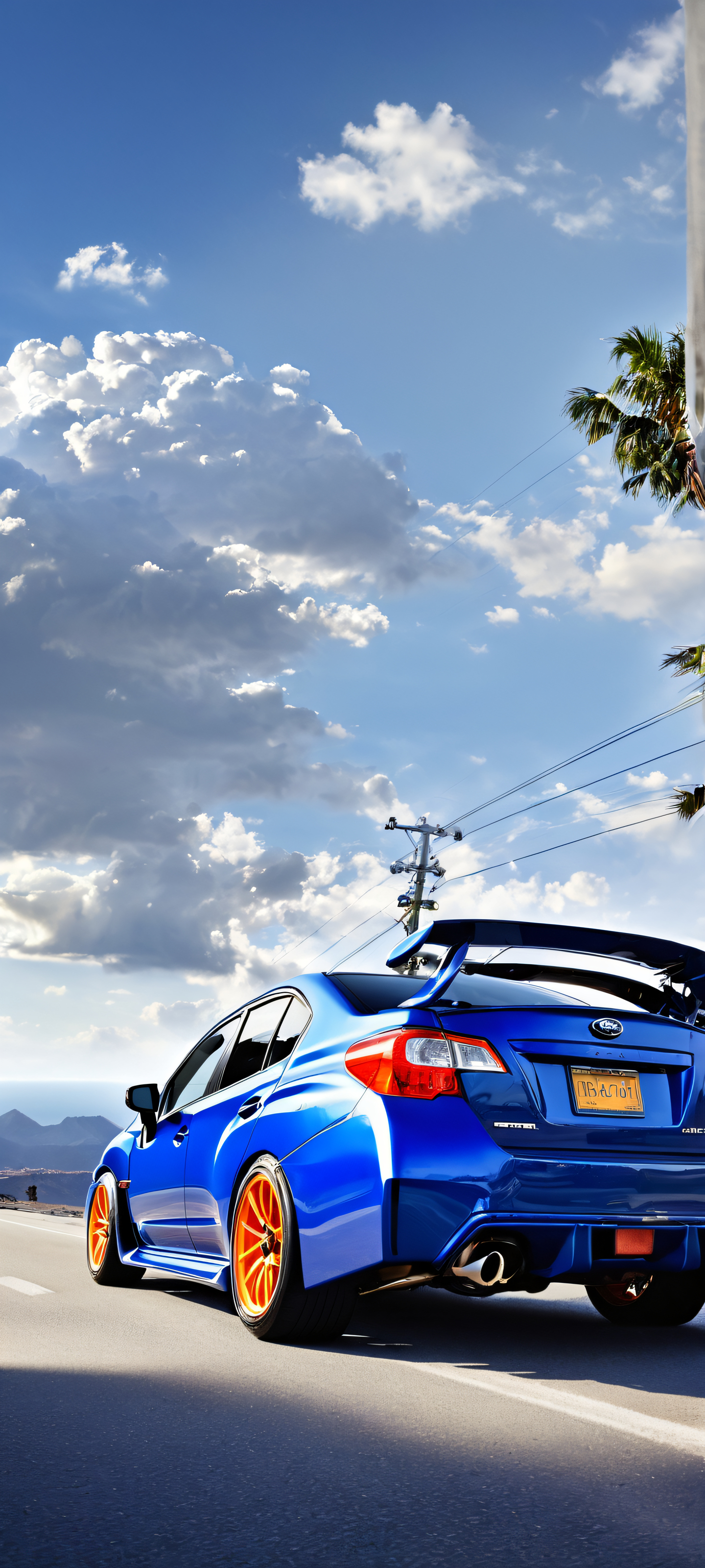 Get ready to be mesmerized by the stunning visual impact of this award-winning digital art, featuring 8K resolution and a masterful blend of CGI and real-world elements. Perfectly clean and empty top half allows for UI widgets to breathe comfortably, while the lower-half presents a breathtaking rear view of the Subaru amidst clouds and power lines.