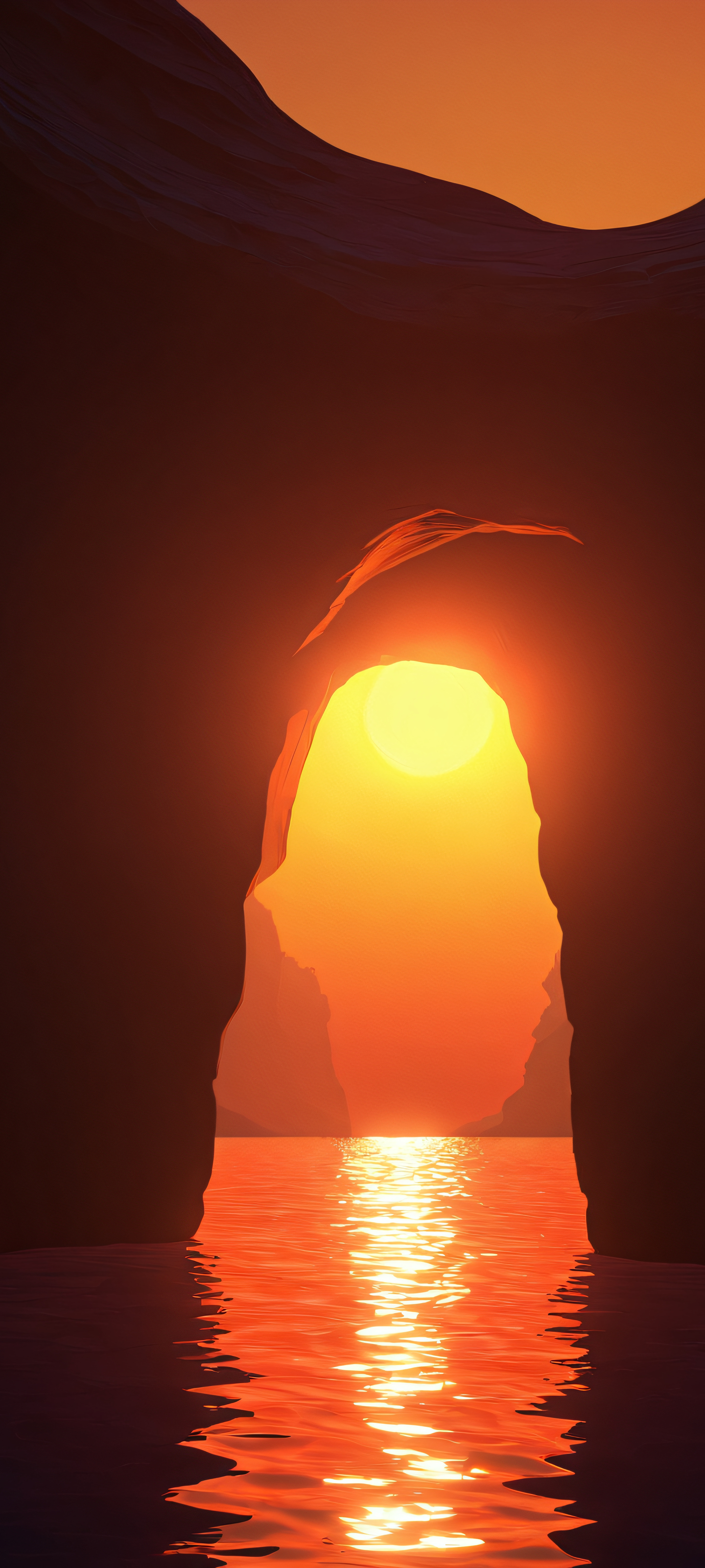 Transform your iPhone, Samsung Galaxy, or Android home screen into an artistic haven with this 2K QHD masterpiece. This stunning vertical wallpaper captures the warmth of a sunset glowing softly within a dark cave, creating a sense of serenity and tranquility.