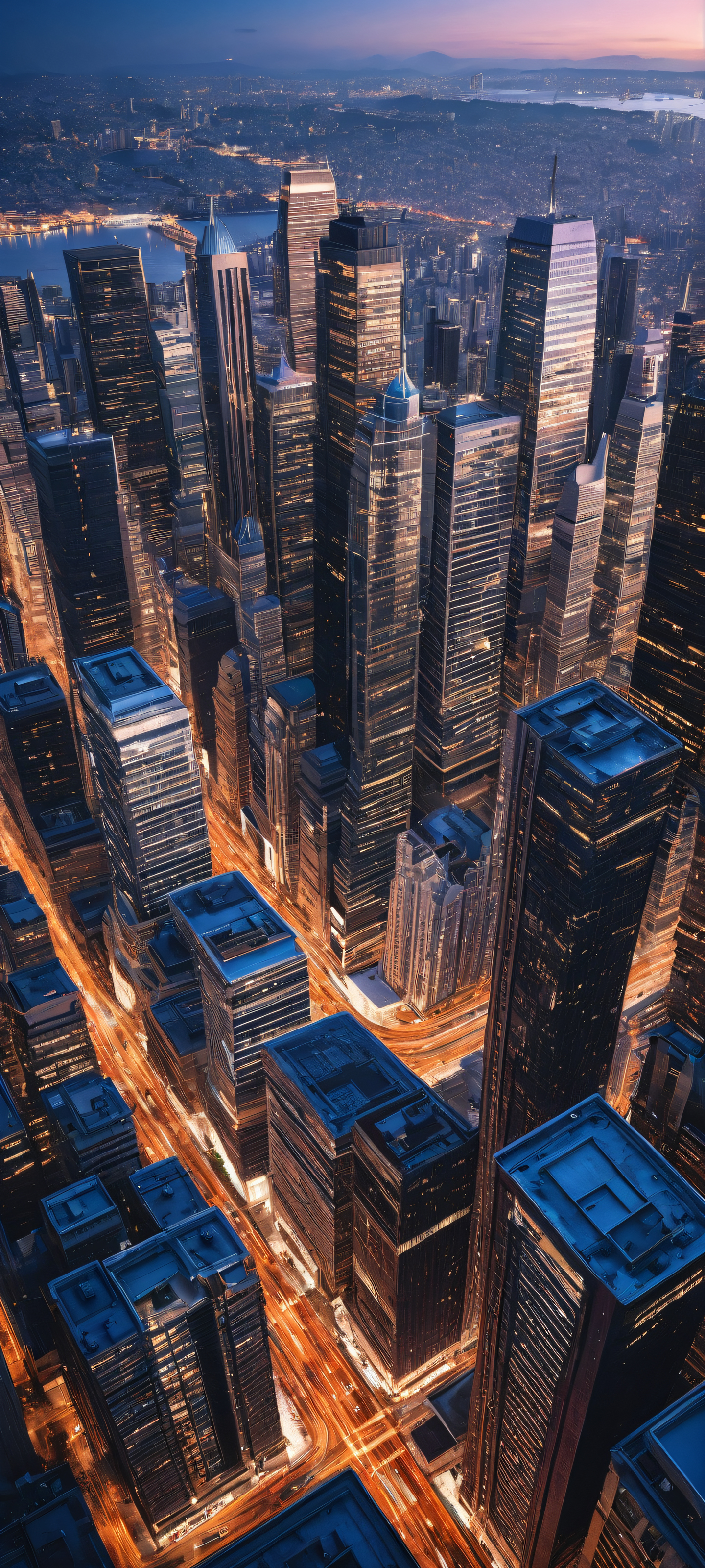 A breathtaking vertical portrait artwork of A majestic cityscape placed in the lower-middle, intricate micro-details of ancient architecture and modern skyscrapers, Perfectly clean and empty top half with vast pure void, gradually giving way to a stylized cityscape in the lower-middle, Award-winning digital art, pristine clarity with a focus on subtle textures and realistic depth of field, Sleek Dark Mode aesthetic with deep perfect blacks, striking crisp contrast, and elegant luminescent accents, Dominant palette of dark blues, deep purples, and metallic silvers, evoking a sense of luxury and sophistication, elegant low-key lighting, deep perfect blacks, striking contrast, sleek dark mode aesthetic, luminescent accents, deep rich colors, portrait composition, centered subject in the lower middle, perfectly clean and smooth top half for UI, extreme depth of field blurred background, highly textured surfaces, intricate micro-details, physically based rendering, award-winning digital art, epic breathtaking scale, stunning visual impact, perfect composition, macOS wallpaper aesthetic, masterpiece, 2K QHD resolution, 9:20 aspect ratio.