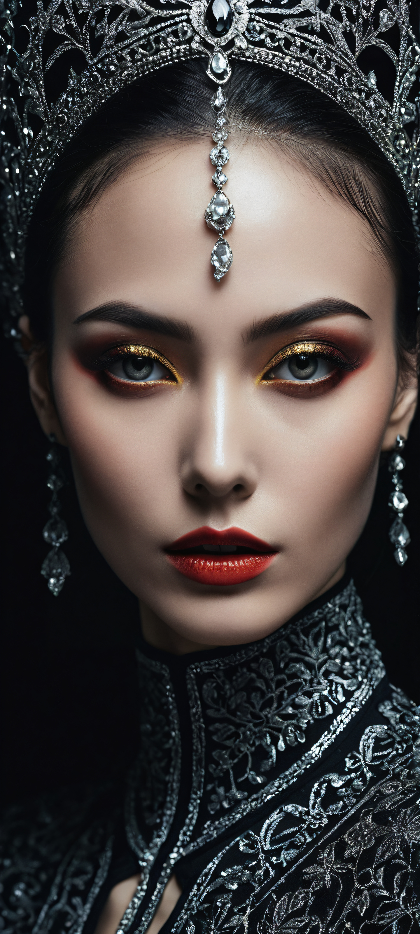 This breathtaking portrait artwork is perfectly optimized for iPhone, Samsung Galaxy, und Android-Startbildschirme. Its stunning visual impact, with deep perfect blacks, striking contrast, and elegant luminescent accents, creates a sleek dark mode aesthetic that’s both mesmerizing and calming.