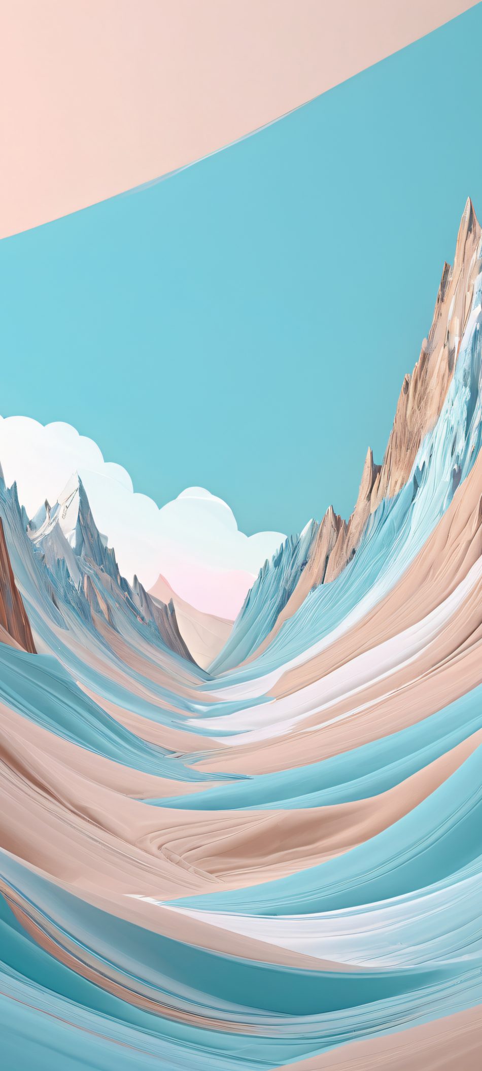 Transform your iPhone or Samsung Galaxy home screen with this stunning 2K QHD masterpiece, perfectly optimized for Android and iOS. This high-quality, highly detailed surreal landscape features distorted mountains in muted pastel blues and earth tones, creating a breathtaking visual experience.