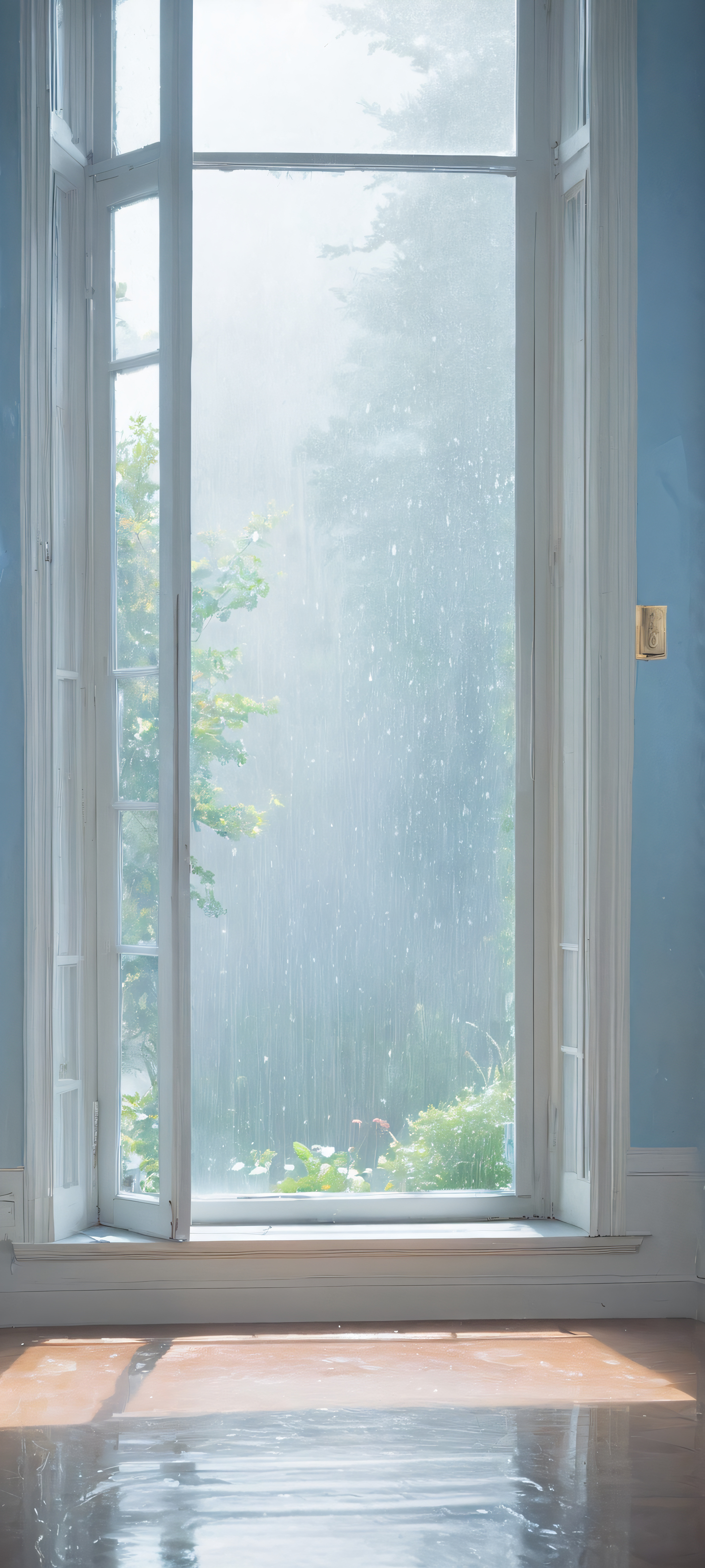 A breathtaking vertical portrait artwork of Pokémon Ditto, placed in the lower-middle with insane micro-details, waiting for its trainer who has not returned yet, despite still holding on to hope., Perfectly clean and empty top half with vast pure void, a dimly lit room with rain pouring outside the window, adding to the melancholic atmosphere. The training room is otherwise empty, reflecting Ditto’s solitude and longing., Award-winning digital watercolor art, pristine clarity, Ethereal lighting with soft, blue-gray hues, subtly illuminated by the faint light of the rain-kissed window, creating an ambiance of quiet despair, Dominant palette: Soft blues (#87CEEB), pale grays (#F7F7F7), and touches of misty whites (#FFFFFF) evoking a sense of melancholy, nostalgia, and hope, ethereal lighting, radiant, brilliant colors, ray traced reflections, pristine clarity, portrait composition, centered subject in the lower middle, perfectly clean and smooth top half for UI, extreme depth of field blurred background, highly textured surfaces, intricate micro-details, physically based rendering, award-winning digital art, epic breathtaking scale, stunning visual impact, perfect composition, macOS wallpaper aesthetic, masterpiece, 2K QHD resolution, 9:20 aspect ratio.