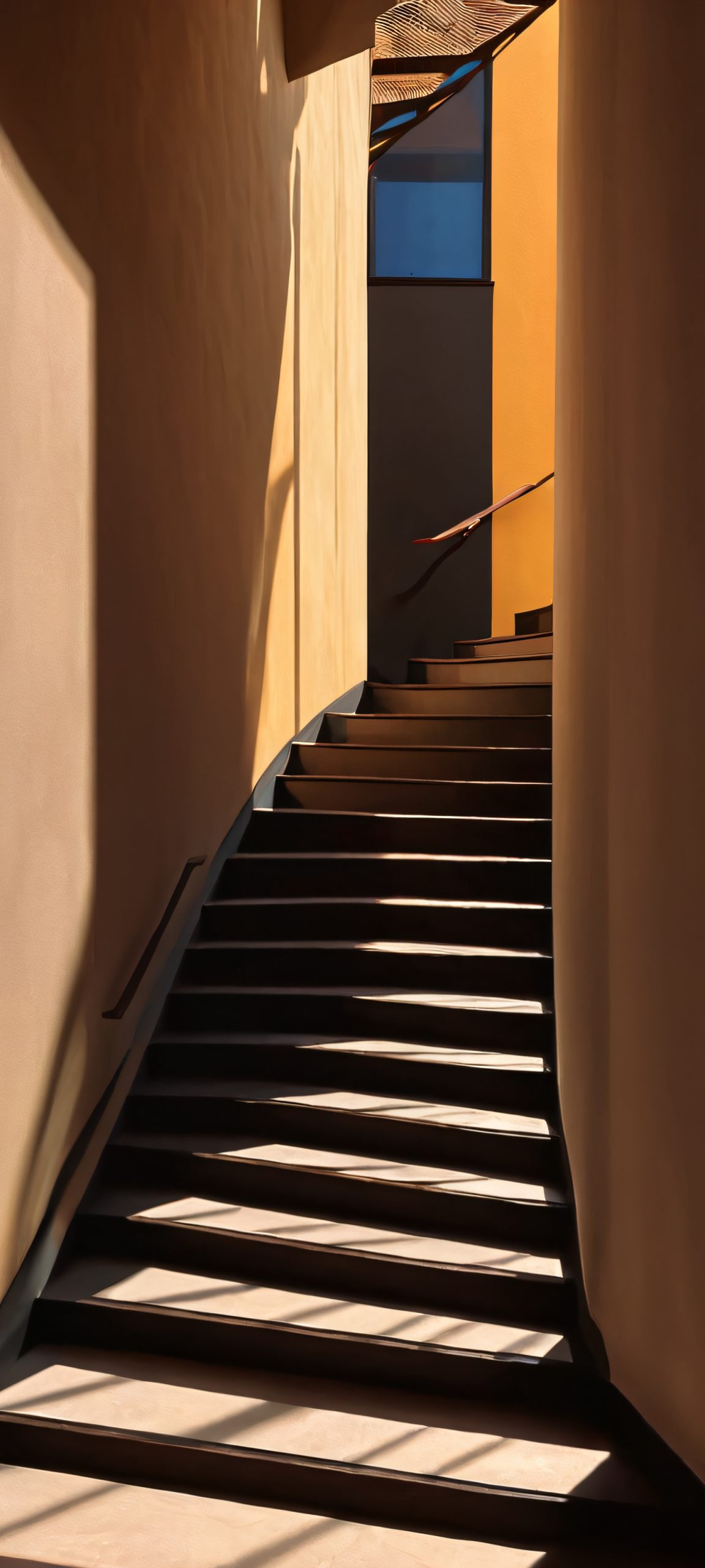 A dramatic staircase of geometric shadows on a dark and moody background, perfect for iPhone/Android home screens.