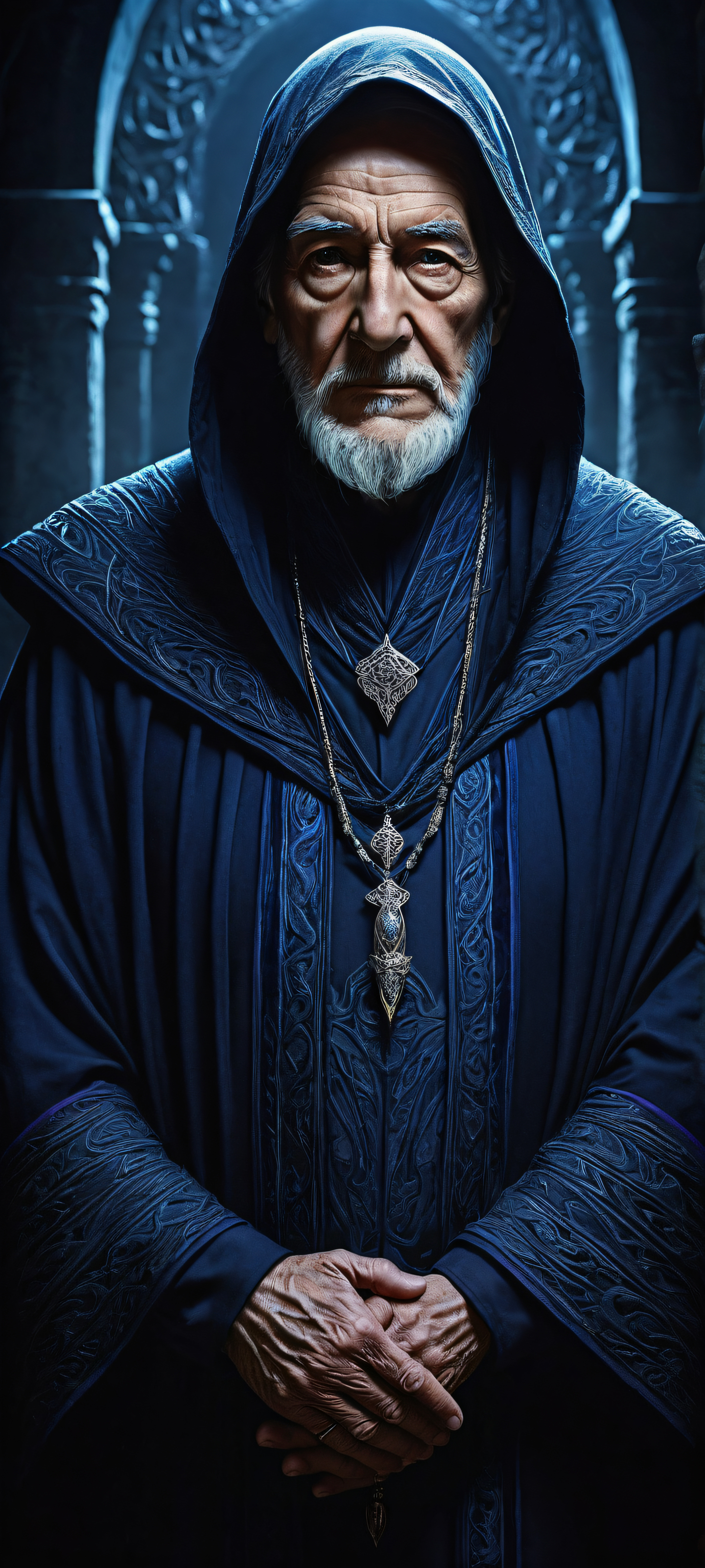Experience the magic of this stunning vertical artwork, perfectly designed for your iPhone or Samsung Galaxy home screen. The elder’s wisdom-filled face is partially hidden by his ornate dark blue robes, while the ancient dungeon below beckons you to uncover its secrets. This breathtaking masterpiece exudes a sleek dark mode aesthetic with deep perfect blacks and striking contrast, making it an ideal addition to any device.