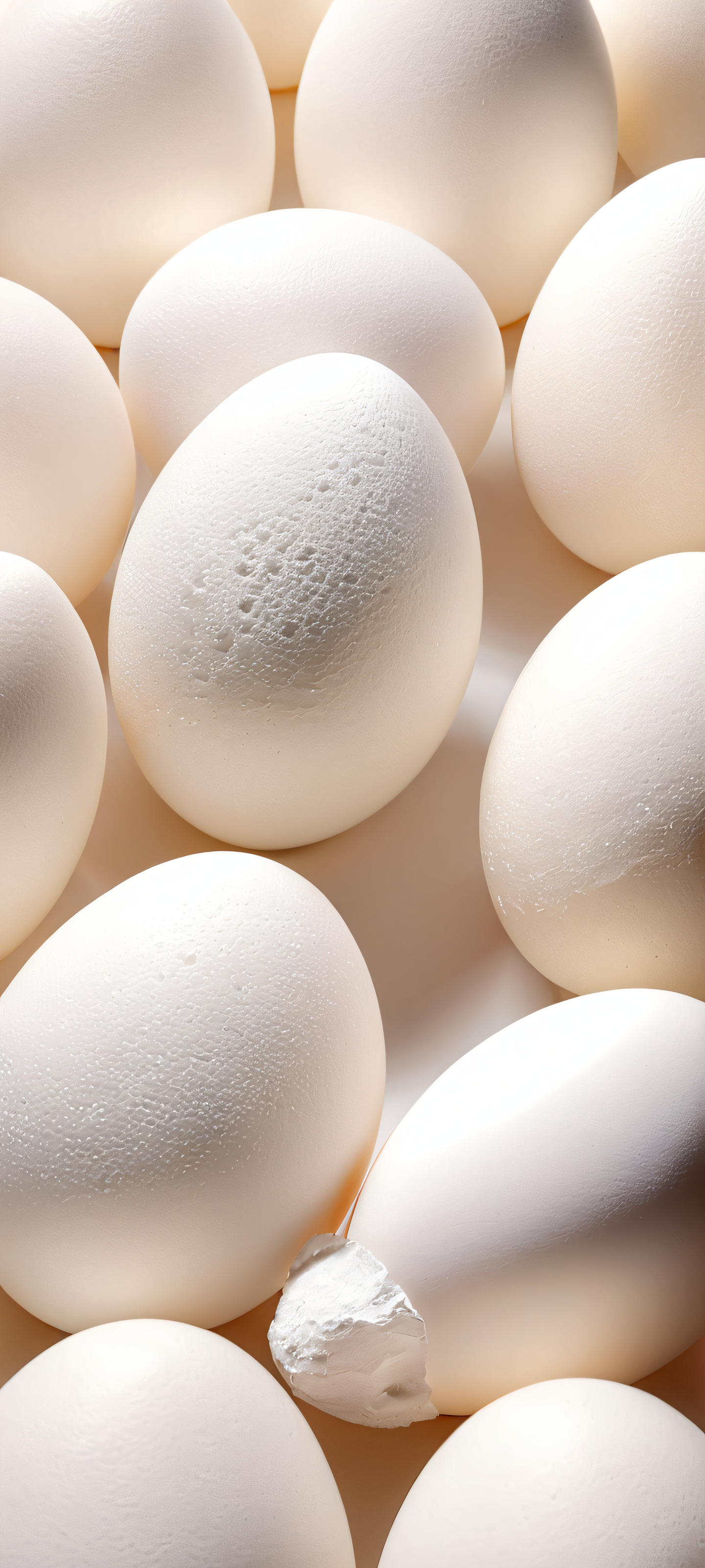 Breathtaking white eggs on a minimalist studio background, perfectly lit with softbox lighting for iPhone and Android users.