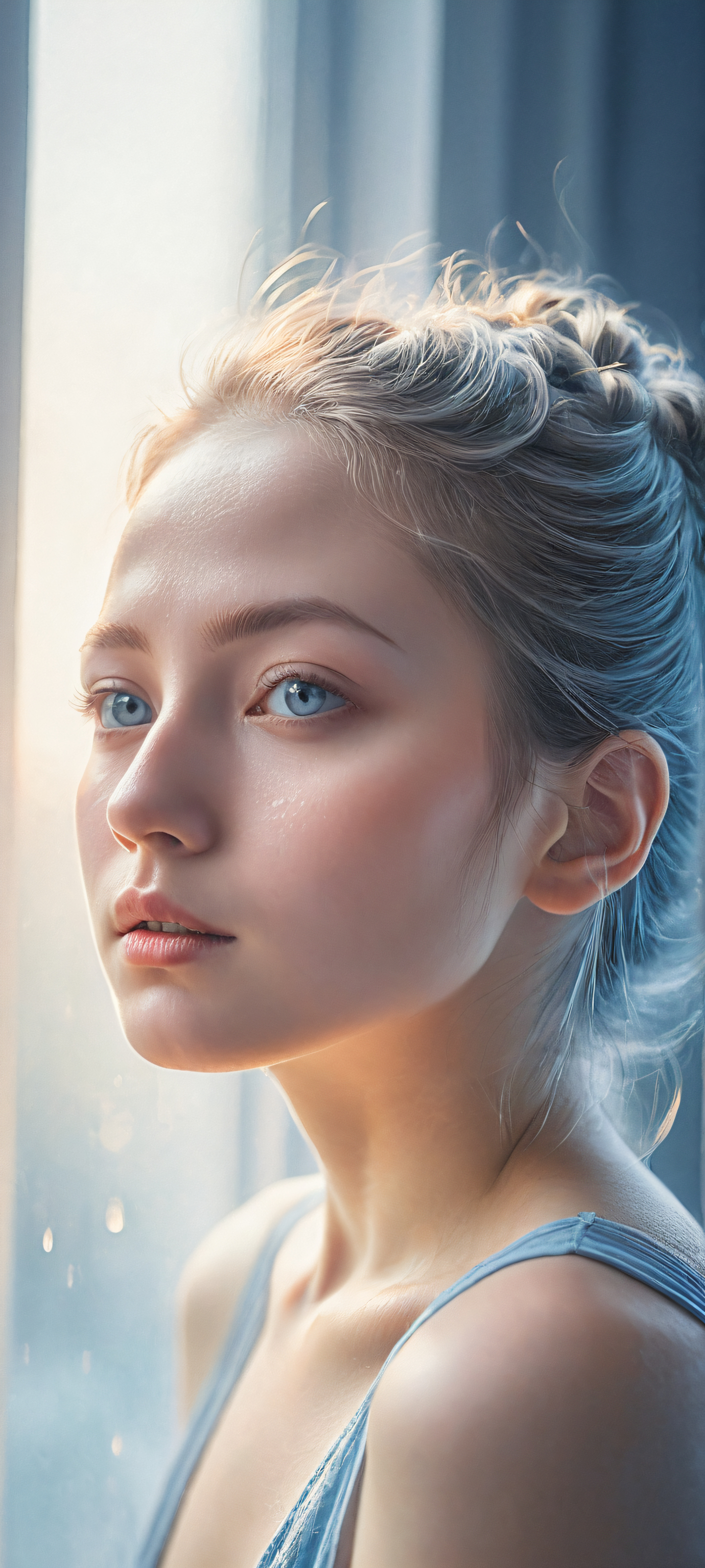A breathtaking vertical portrait artwork of Ditto, placed in the lower-middle with insane micro-details, waiting for its trainer who has not returned, yet it waits patiently., Perfectly clean and empty top half with vast pure void, darkened room lit only by gentle rain falling outside the window, Award-winning digital watercolor art, featuring stunning visual impact and pristine clarity., Ethereal lighting with soft, diffused rays of light casting a melancholic atmosphere, with a single tear rolling down Ditto’s eye, Dominant color palette featuring shades of blue and gray, evoking feelings of sadness and longing, iluminación etérea, radiant, brilliant colors, ray traced reflections, pristine clarity, portrait composition, centered subject in the lower middle, perfectly clean and smooth top half for UI, extreme depth of field blurred background, highly textured surfaces, intricate micro-details, physically based rendering, award-winning digital art, epic breathtaking scale, stunning visual impact, perfect composition, macOS wallpaper aesthetic, masterpiece, 2K QHD resolution, 9:20 aspect ratio.