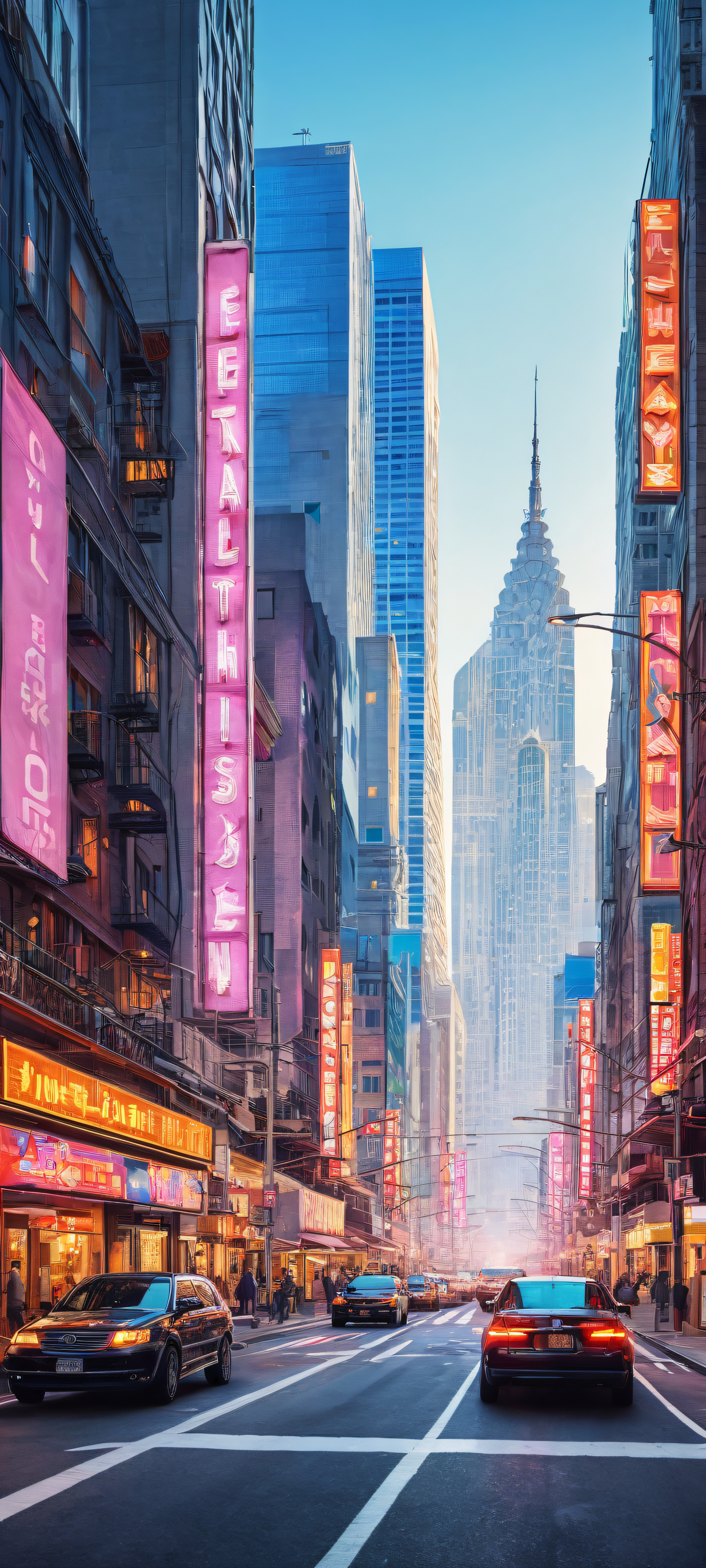 A breathtaking vertical portrait artwork of Beautiful World: A serene cityscape with intricate details placed in the lower-middle, showcasing a dynamic pose and angle., A perfectly clean and empty top half with vast pure void, gradually giving way to a breathtaking cityscape, evoking a sense of wonder., Award-winning digital art, stunning visual impact, pristine clarity and precision, blending photorealism with subtle textures., Ethereal lighting shines down from above, casting a soft glow on the subject, with vibrant colors radiating from the city’s neon lights, creating a stunning visual contrast., Dominant hues include Yuune’s signature pastel shades, ranging from pale blues and pinks to soft whites and creams, punctuated by bursts of bright colors from the city’s urban landscape., iluminación etérea, radiant, brilliant colors, ray traced reflections, pristine clarity, portrait composition, centered subject in the lower middle, perfectly clean and smooth top half for UI, extreme depth of field blurred background, highly textured surfaces, intricate micro-details, physically based rendering, award-winning digital art, epic breathtaking scale, stunning visual impact, perfect composition, macOS wallpaper aesthetic, masterpiece, 2K QHD resolution, 9:20 aspect ratio.