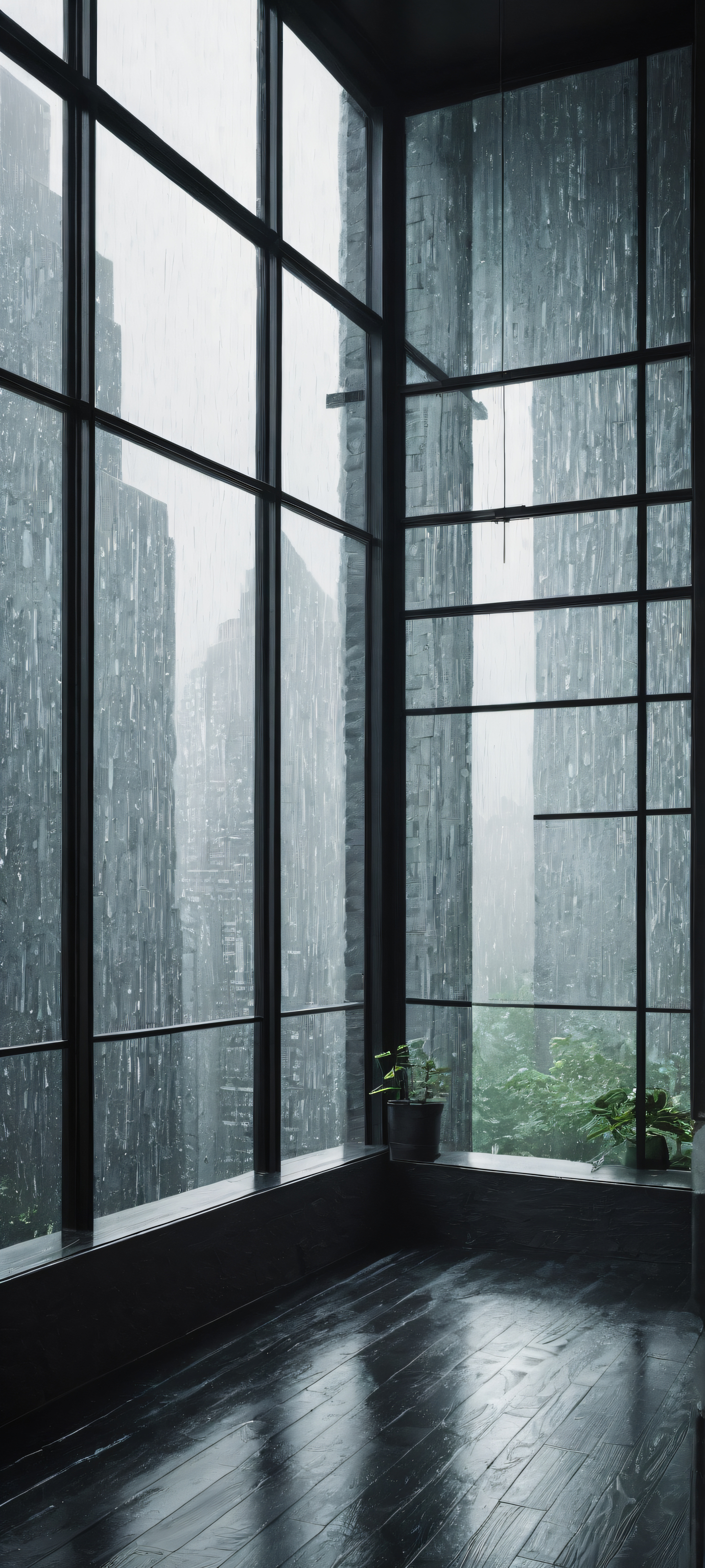 A breathtaking vertical portrait artwork of Ditto, placed in the lower-middle with insane micro-details, waiting patiently for its trainer who has left forever., Perfectly clean and empty top half with vast pure void, contrasting with a dimly lit room where rain pours outside the window, creating a melancholic atmosphere., Award-winning watercolor digital art, pristine clarity, and subtle texture., Deep dark mode aesthetic with crisp black shadows and elegant luminescent accents from the rain-kissed windowpane., #333333 (dark grey-blue), #666666 (medium dark grey), and touches of #8B9467 (misty green) to evoke a sense of melancholy and longing., elegant low-key lighting, deep perfect blacks, striking contrast, sleek dark mode aesthetic, luminescent accents, deep rich colors, portrait composition, centered subject in the lower middle, perfectly clean and smooth top half for UI, extreme depth of field blurred background, highly textured surfaces, intricate micro-details, physically based rendering, award-winning digital art, epic breathtaking scale, stunning visual impact, perfect composition, macOS wallpaper aesthetic, masterpiece, 2K QHD resolution, 9:20 aspect ratio.