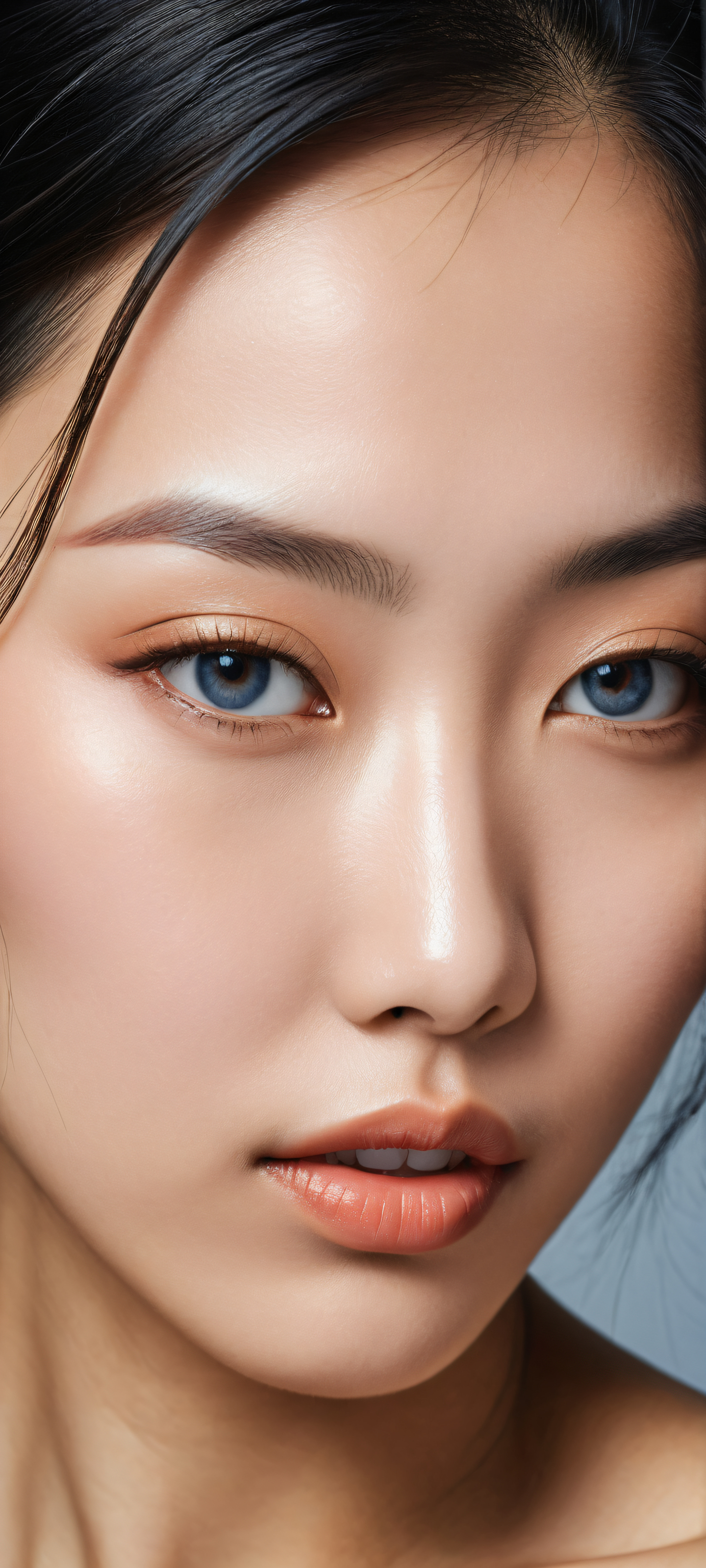 A breathtaking vertical portrait artwork of A stunning, 23-year-old Asian woman’s face is placed in the lower-middle with insane micro-details, perfectly capturing her serene expression., Perfectly clean and empty top half with vast pure void, allowing for unobstructed focus on the subject’s breathtaking features, Award-winning digital art, pristine clarity, and a masterful blend of realistic textures create an unforgettable visual experience., Deep, perfect blacks dominate the scene, punctuated by crisp contrast and subtle, elegant luminescent accents that emphasize the subject’s delicate features, #002A3B (Dark Mode Blues), elegant low-key lighting, deep perfect blacks, striking contrast, sleek dark mode aesthetic, luminescent accents, deep rich colors, portrait composition, centered subject in the lower middle, perfectly clean and smooth top half for UI, extreme depth of field blurred background, highly textured surfaces, intricate micro-details, physically based rendering, award-winning digital art, epic breathtaking scale, stunning visual impact, perfect composition, macOS wallpaper aesthetic, masterpiece, 2K QHD resolution, 9:20 aspect ratio.