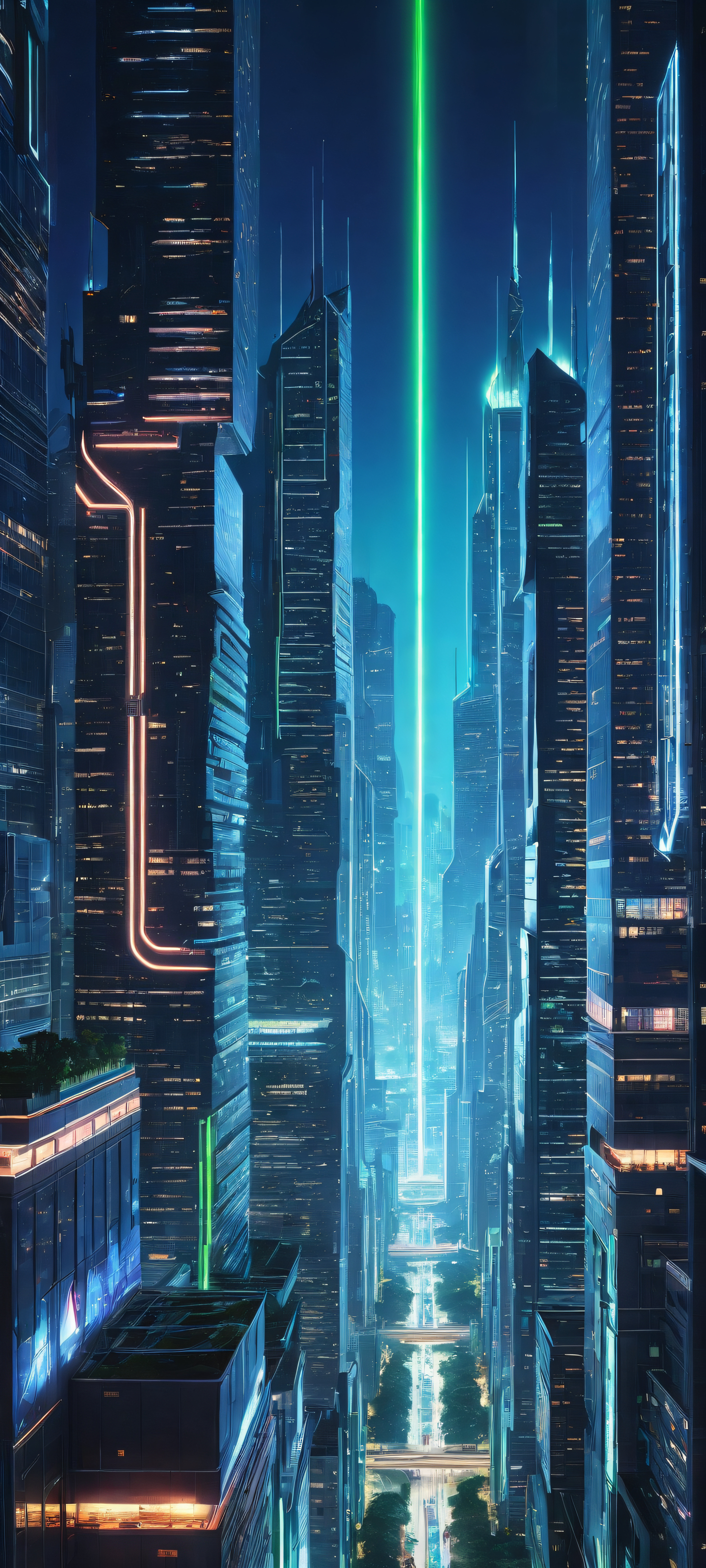 A breathtaking vertical portrait artwork of placed in the lower-middle, intricate micro-details of a futuristic cityscape with glowing neon lines and subtle circuitry patterns, perfectly clean and empty top half with vast pure void, allowing UI widgets to breathe, while the bottom half is a futuristic cityscape with towering skyscrapers and neon lights, award-winning digital art, pristine clarity, reminiscent of cksc’s unique blend of cyberpunk and mystical elements, ethereal lighting with a subtle glow emanating from the city’s infrastructure, accompanied by soft, radiant rays of light that seem to come from nowhere and everywhere at once, [‘dark blue’, ‘neon green’, ‘bright silver’], iluminación etérea, radiant, brilliant colors, ray traced reflections, pristine clarity, portrait composition, centered subject in the lower middle, perfectly clean and smooth top half for UI, extreme depth of field blurred background, highly textured surfaces, intricate micro-details, physically based rendering, award-winning digital art, epic breathtaking scale, stunning visual impact, perfect composition, macOS wallpaper aesthetic, masterpiece, 2K QHD resolution, 9:20 aspect ratio.