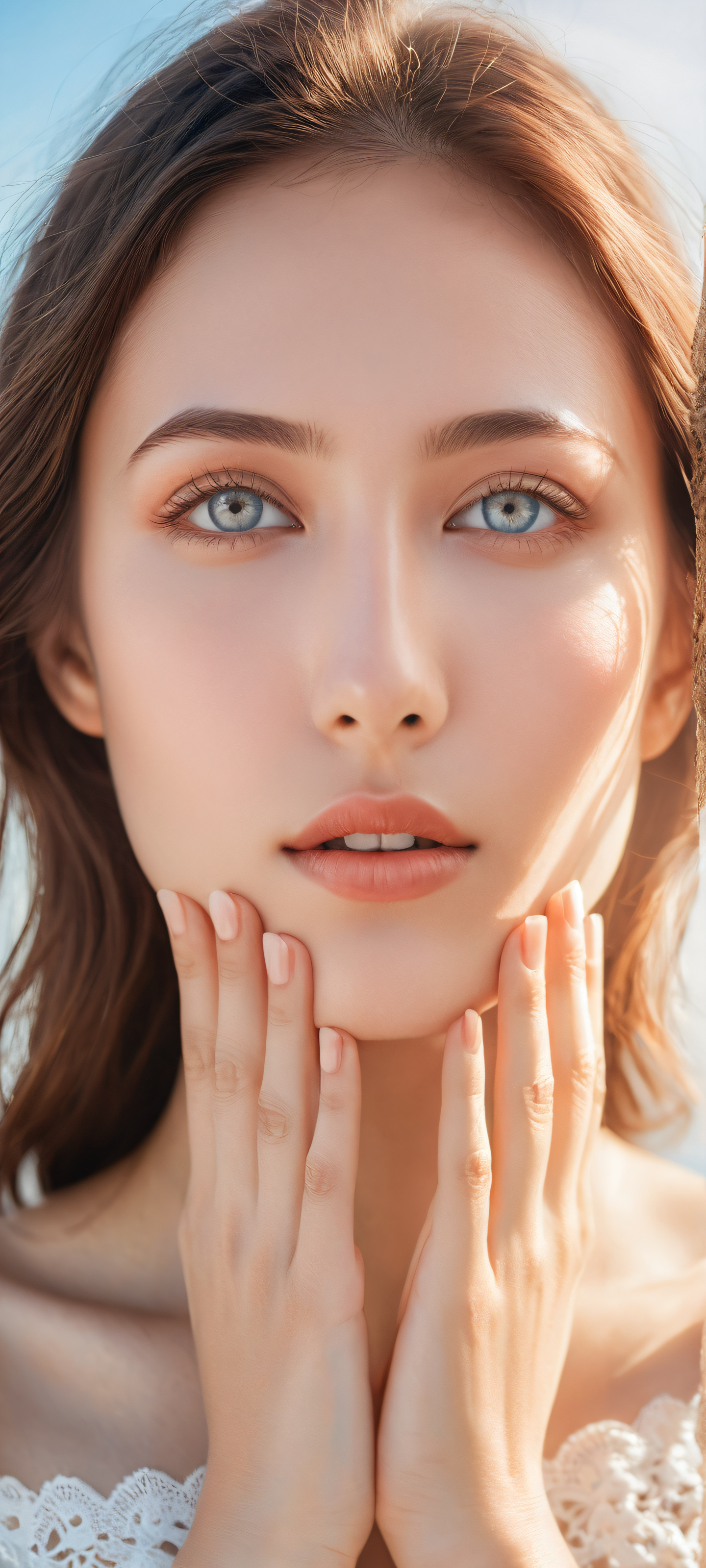 A breathtaking vertical portrait artwork of Within a dreamy expanse of lavender-hued mist, a majestic cityscape rises like a shimmering mirage, its spires and turrets glinting with an ethereal luminescence as if kissed by the soft light of a thousand stars. Delicate wisps of cirrus clouds drift lazily across the celestial canvas, their gentle undulations echoing the serene movement of silk-swayed lotus petals suspended in a tranquil lake., portrait composition, centered subject in the lower middle, perfectly clean and smooth top half for UI, extreme depth of field blurred background, highly textured surfaces, intricate micro-details, physically based rendering, award-winning digital art, masterpiece, 2K QHD resolution, 9:20 aspect ratio