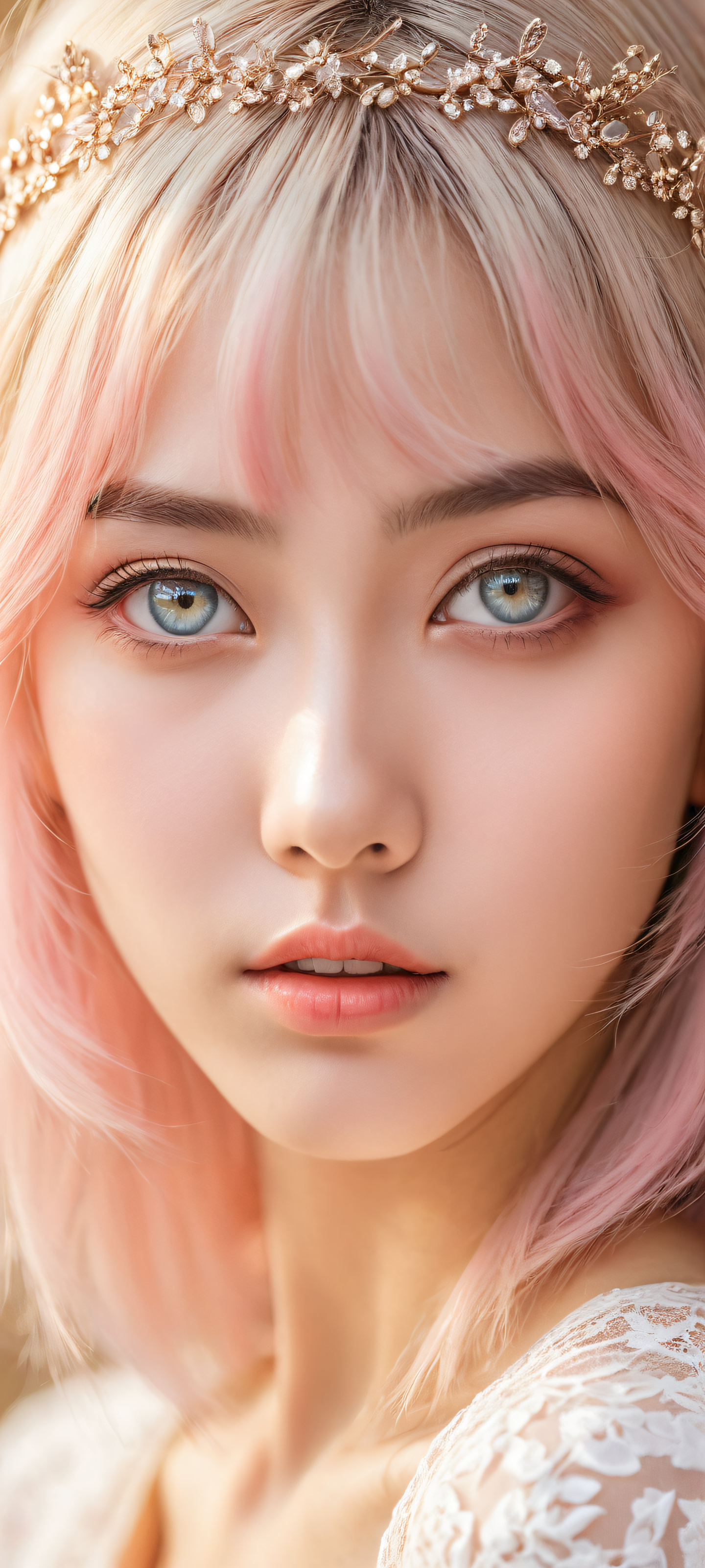 A breathtaking vertical portrait artwork of A young anime girl, placed in the lower-middle with intricate micro-details, her eyes and hair perfectly rendered with insane depth of field., Perfectly clean and empty top half with vast pure void, allowing for seamless UI integration, and a serene background that puts the subject at center stage., Award-winning digital art, stunning visual impact with a focus on pristine clarity and meticulous attention to detail., Ethereal softbox lighting with radiant, brilliant colors, ray traced reflections, and impeccable clarity, evoking a sense of wonder and magic., Pastel pink and white hues, blending seamlessly into a warm beige tone, creating a dreamy atmosphere that radiates pure joy and innocence., iluminación etérea, radiant, brilliant colors, ray traced reflections, pristine clarity, portrait composition, centered subject in the lower middle, perfectly clean and smooth top half for UI, extreme depth of field blurred background, highly textured surfaces, intricate micro-details, physically based rendering, award-winning digital art, epic breathtaking scale, stunning visual impact, perfect composition, macOS wallpaper aesthetic, masterpiece, 2K QHD resolution, 9:20 aspect ratio.