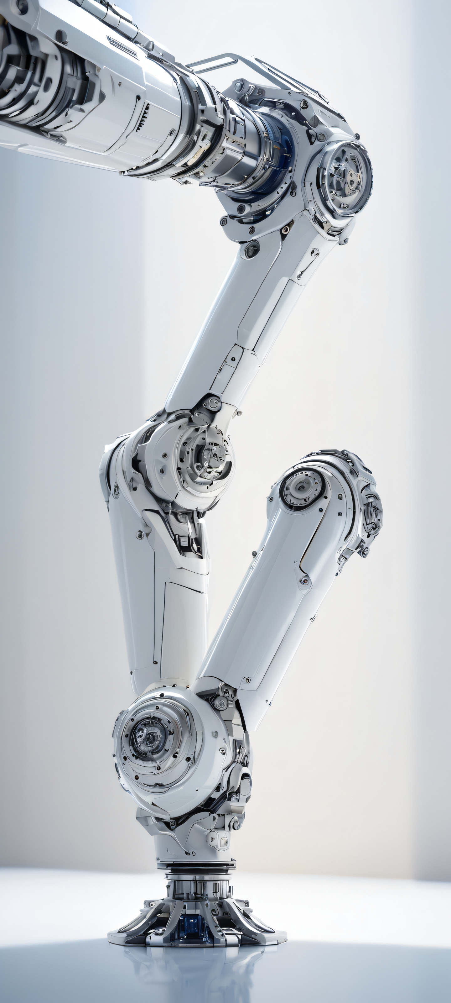 A breathtaking vertical portrait artwork of A futuristic robotic arm placed in the lower-middle, intricate micro-details and precision engineering, Perfectly clean and empty top half with vast pure void, allowing for unobstructed viewing of the robotic arm and its intricacies, Award-winning digital art, stunning visual impact with an emphasis on impeccable detail and crisp clarity, Ethereal and radiant, with soft, brilliant highlights and a sense of airiness that accentuates the futuristic feel, A palette of calming blues and whites, evoking a sense of serenity and precision, while also hinting at the advanced technology, iluminación etérea, radiant, brilliant colors, ray traced reflections, pristine clarity, portrait composition, centered subject in the lower middle, perfectly clean and smooth top half for UI, extreme depth of field blurred background, highly textured surfaces, intricate micro-details, physically based rendering, award-winning digital art, epic breathtaking scale, stunning visual impact, perfect composition, macOS wallpaper aesthetic, masterpiece, 2K QHD resolution, 9:20 aspect ratio.